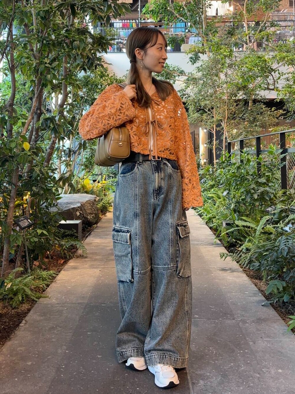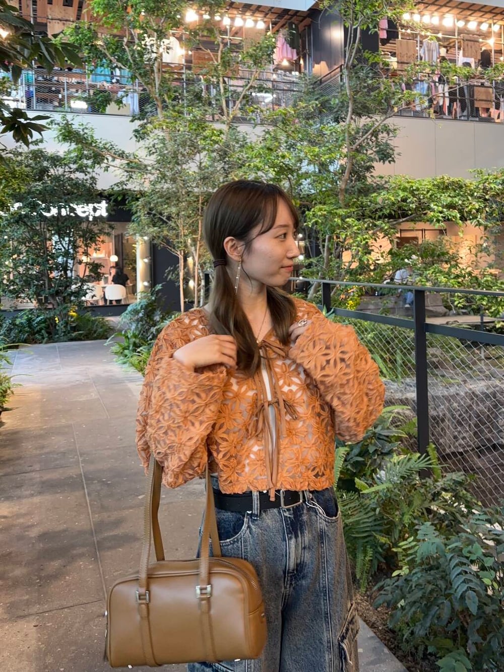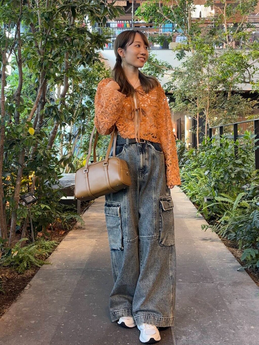 フラワー柄がかわいいブラウスで甘カジュアルコーデを組んでみました🍊♡