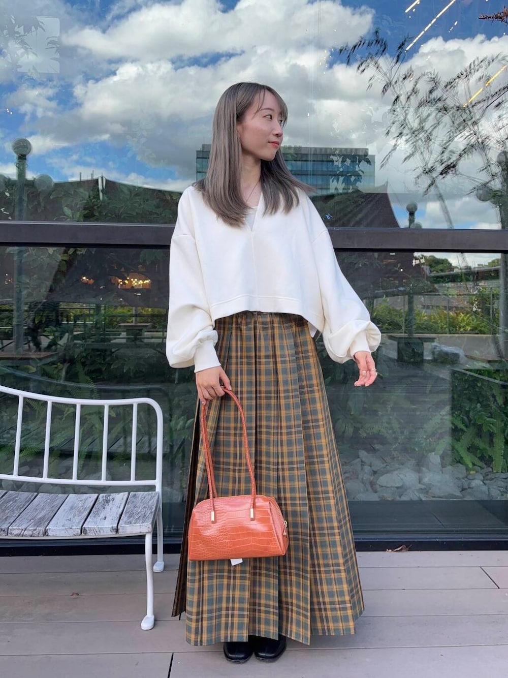 秋色かわいいプリーツスカートでシンプル可愛いコーデに仕上げてみました!🍁