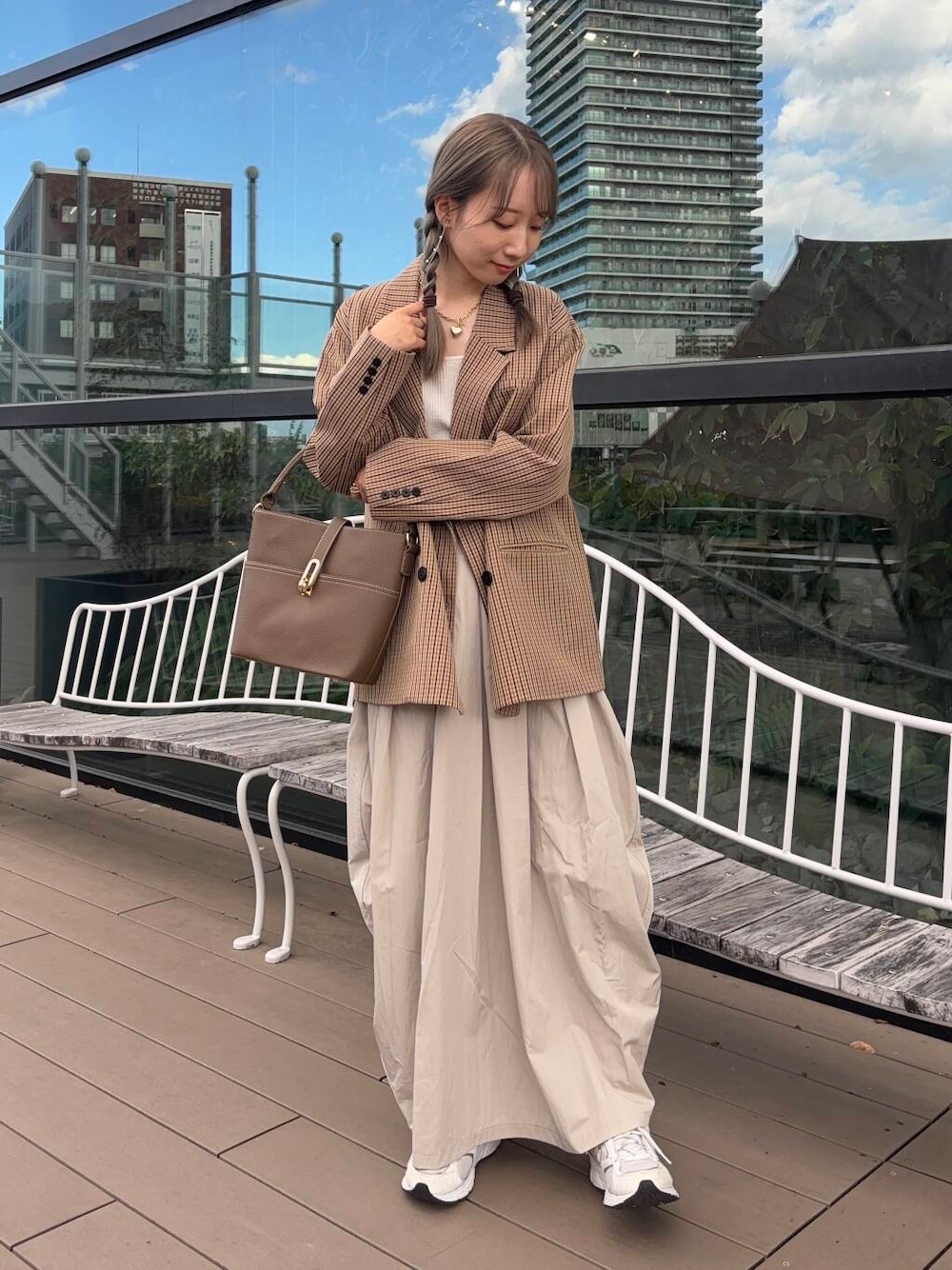 ジャケットは若干オーバーサイズで作られてるためゆったりルーズな感じできてもらえればイマっぽコーデが仕上がりますよ🥰