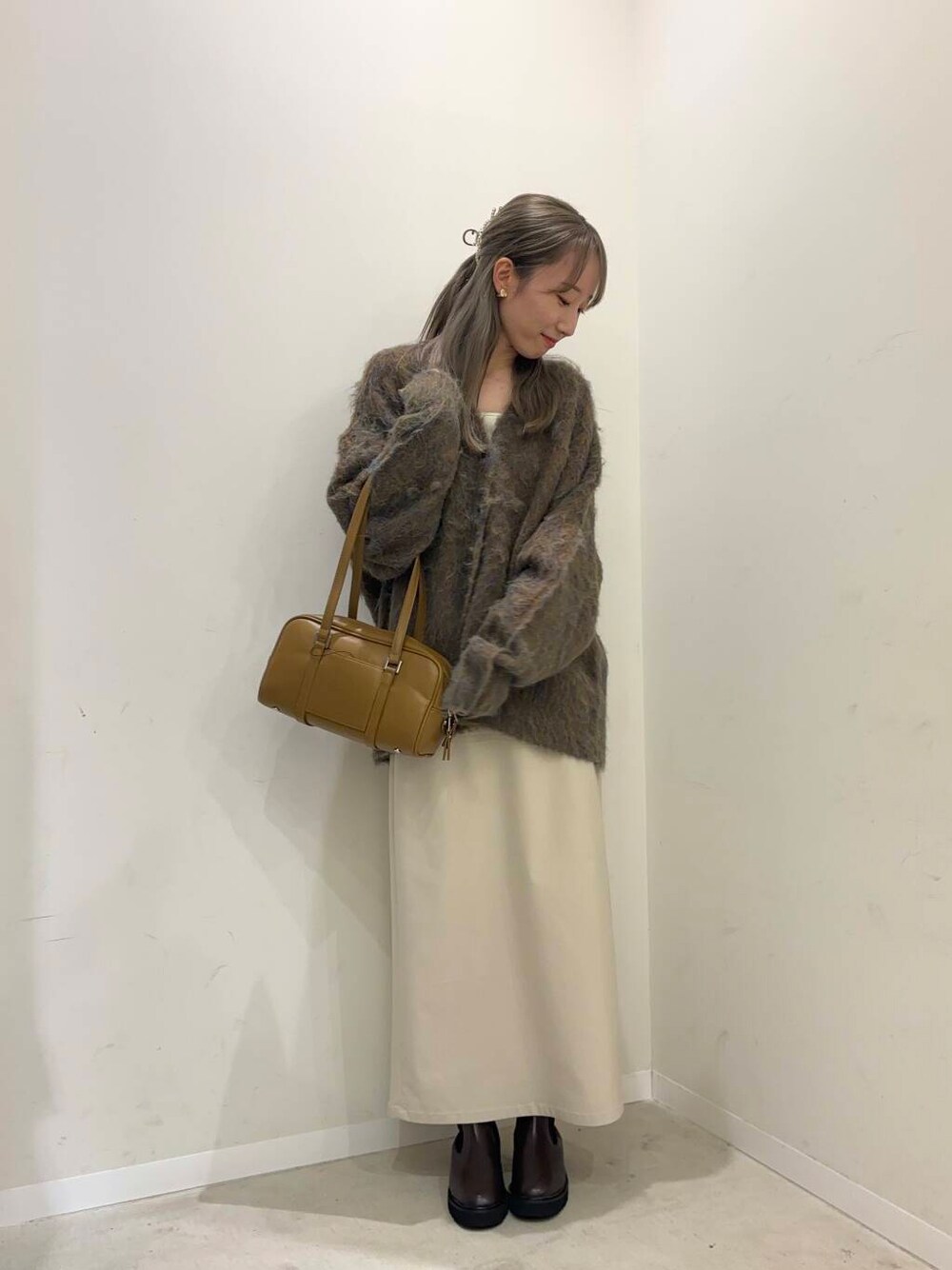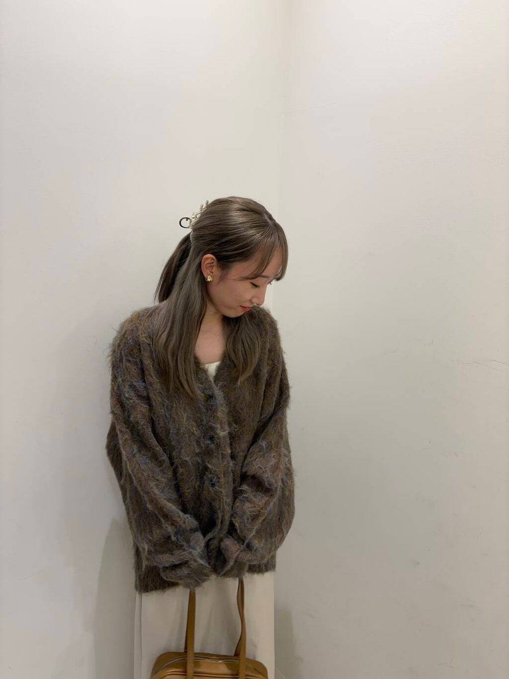 今回はシャギー感が気持ちいいカーディガンに、定番のサス付きスカートを履いてシンプル可愛いコーディネートに仕上げました♩