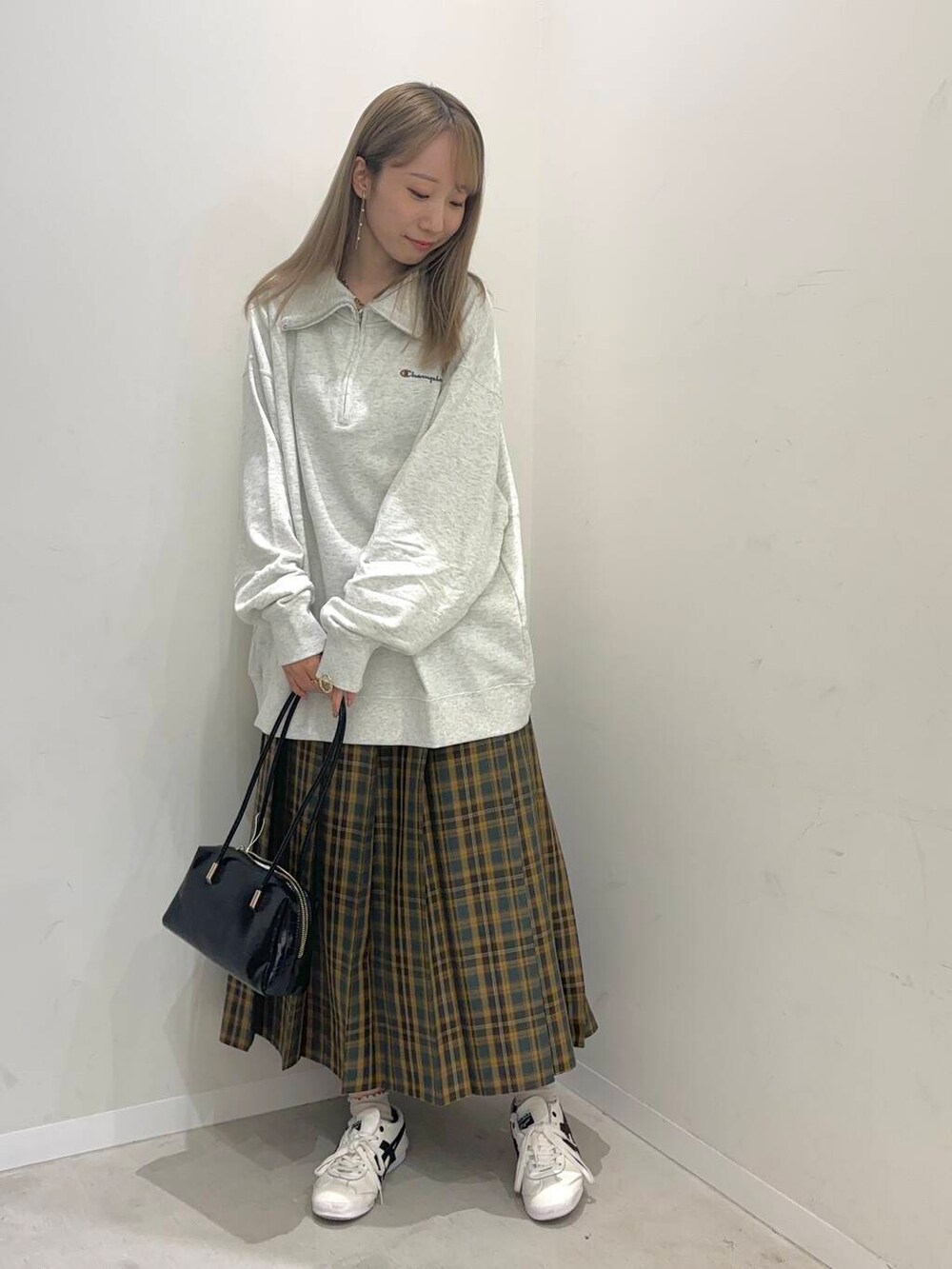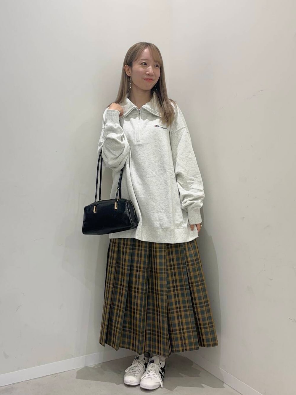 今回はChampionとのコラボ商品のハーフジップにチェックのプリーツスカートを合わせて秋のカジュアルコーデを組んでみました♡