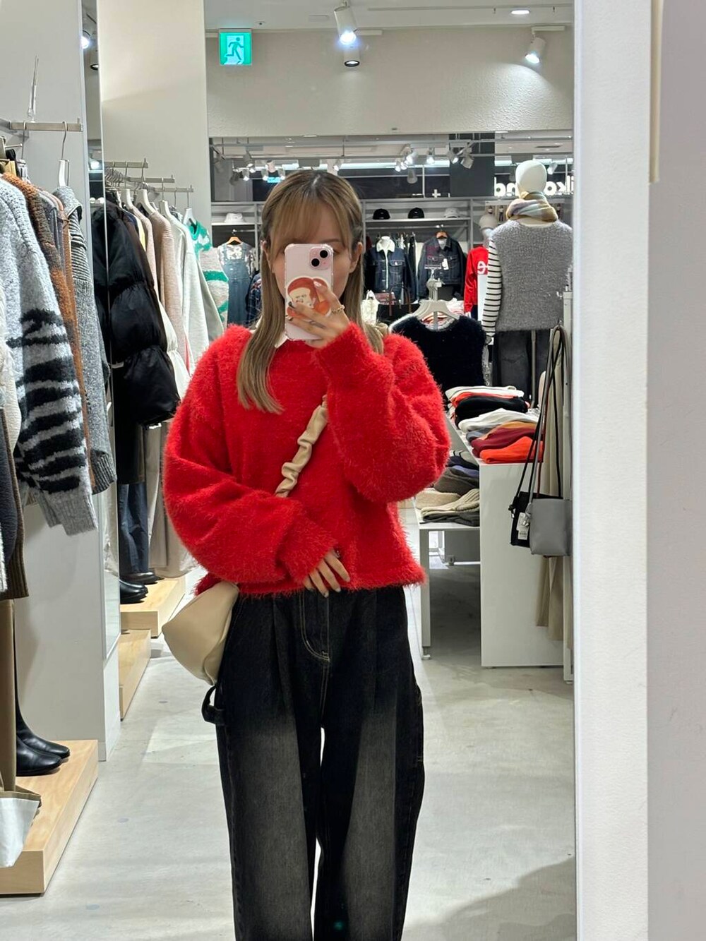 今回はシャギーの赤ニットを主役にコーデを組んでみました❤️𓂃 𓈒