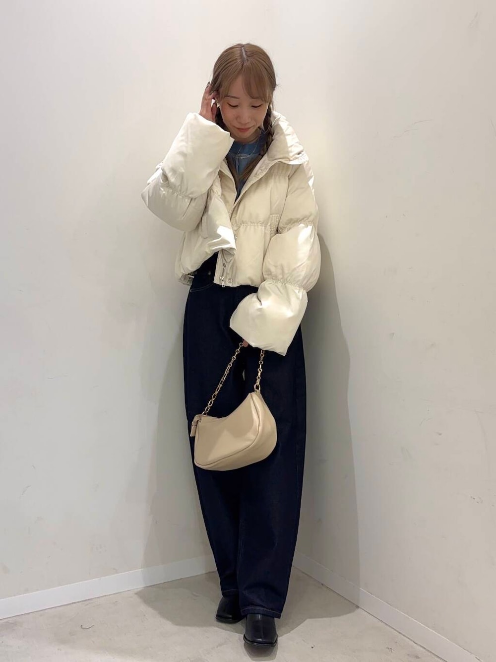 クロップド丈のダウンはハイウエストデニムや、ワンピースとの相性も抜群♪︎