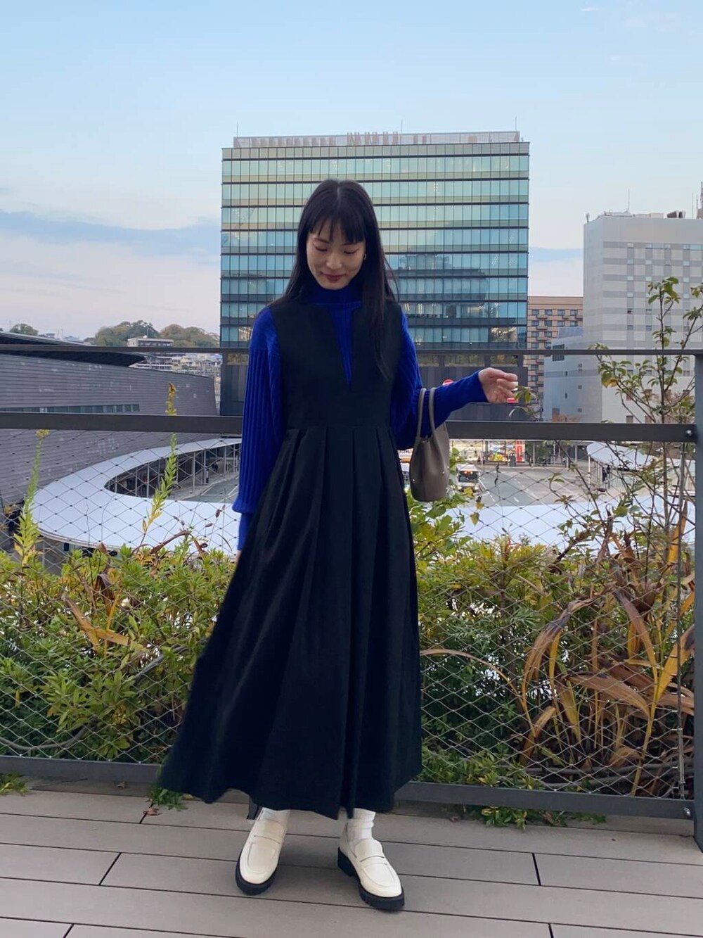 『2サイズ展開』キーネックBIGプリーツジャンパースカート