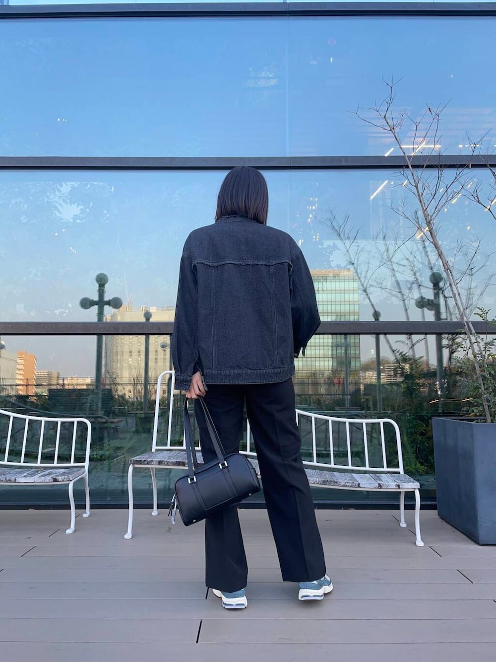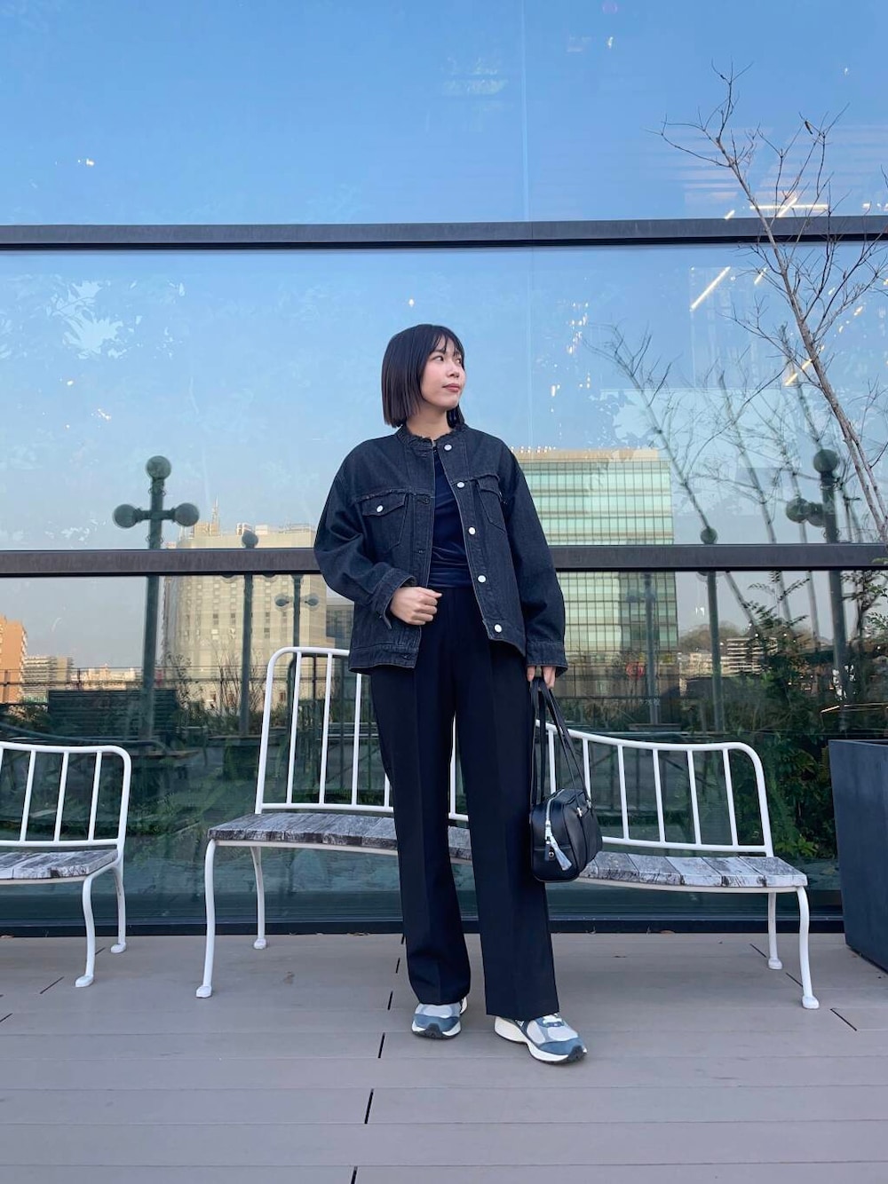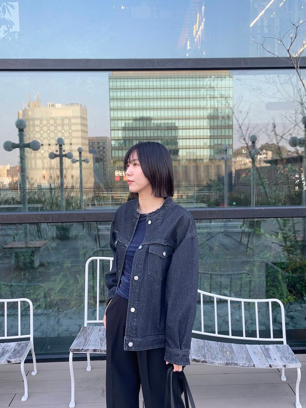 カジュアルなデニムジャケットをダークトーンでまとめて大人っぽく着てみました🤗