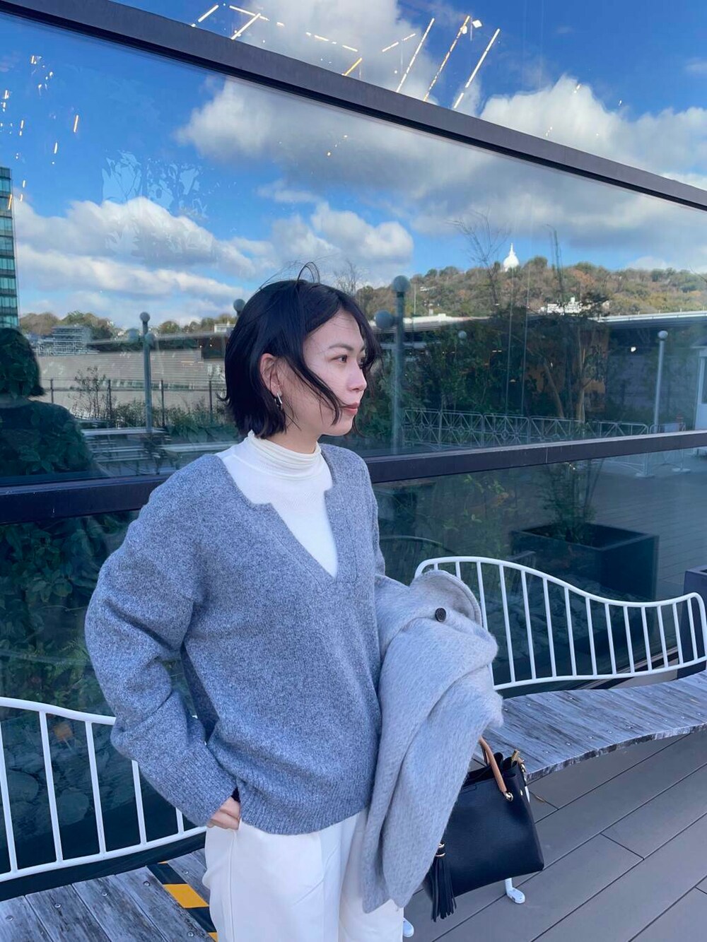 キーネックのデザインが可愛いニットは肌触りも良い💕