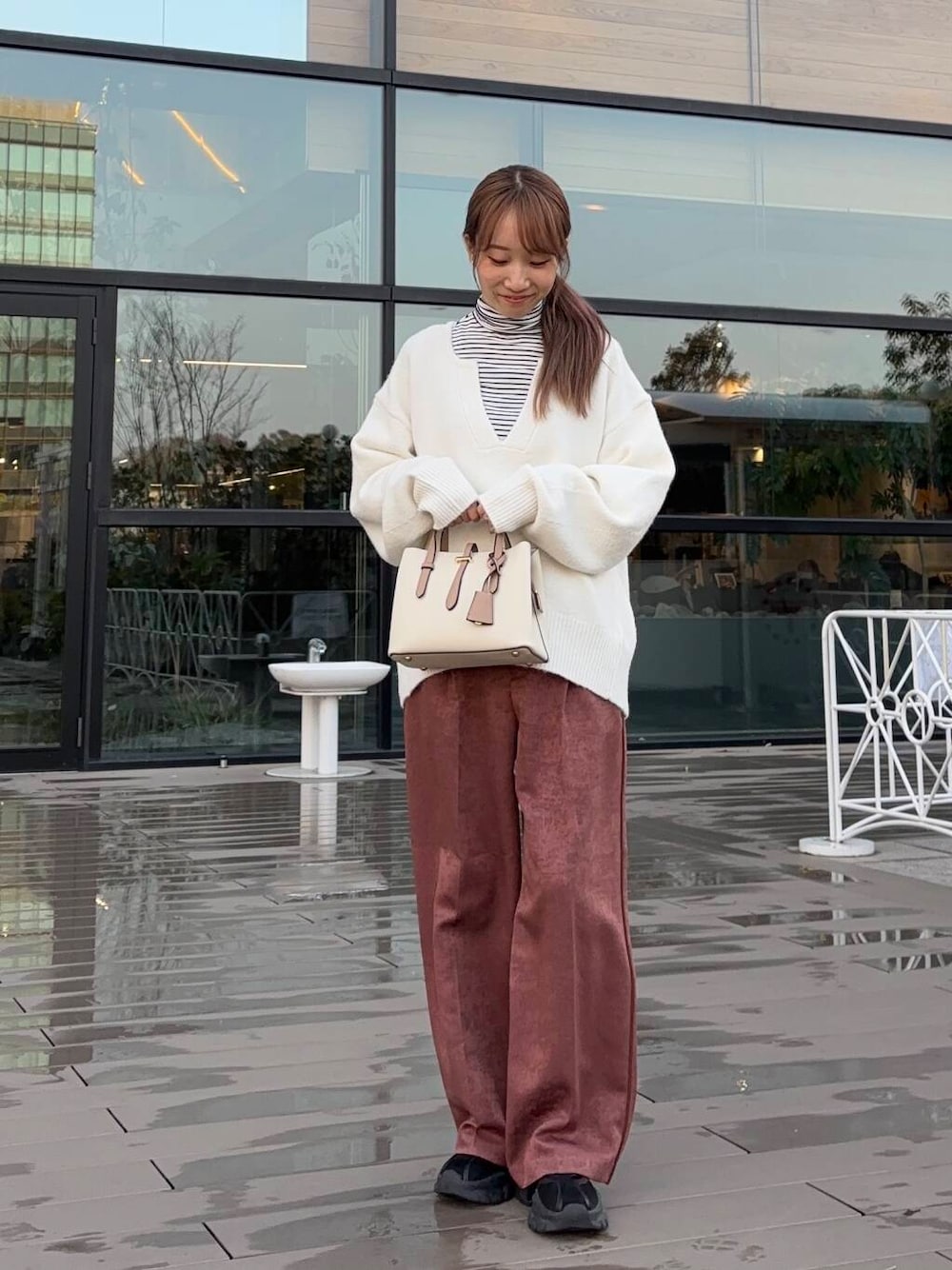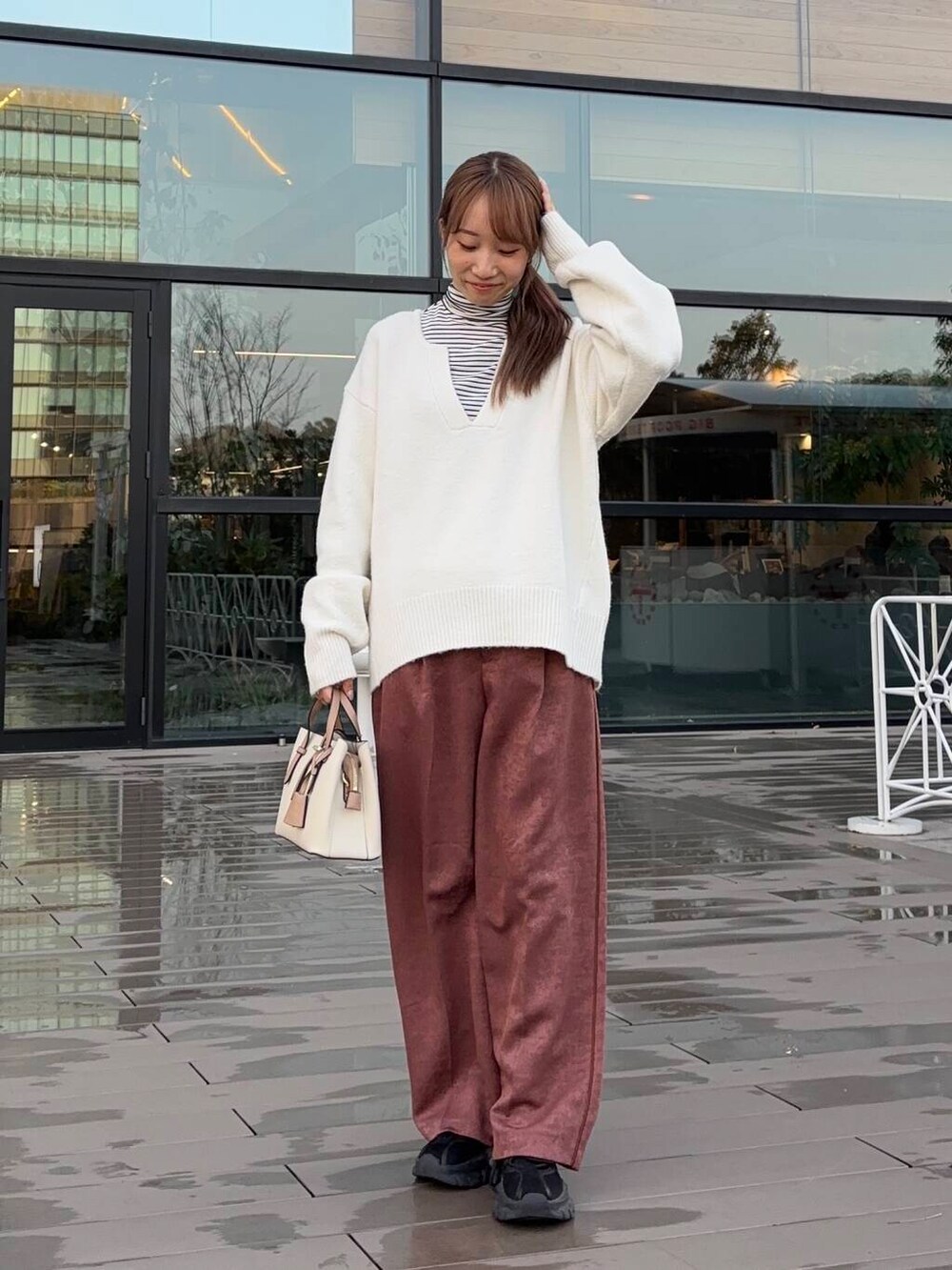 トップスは大きなVネックが特徴的!