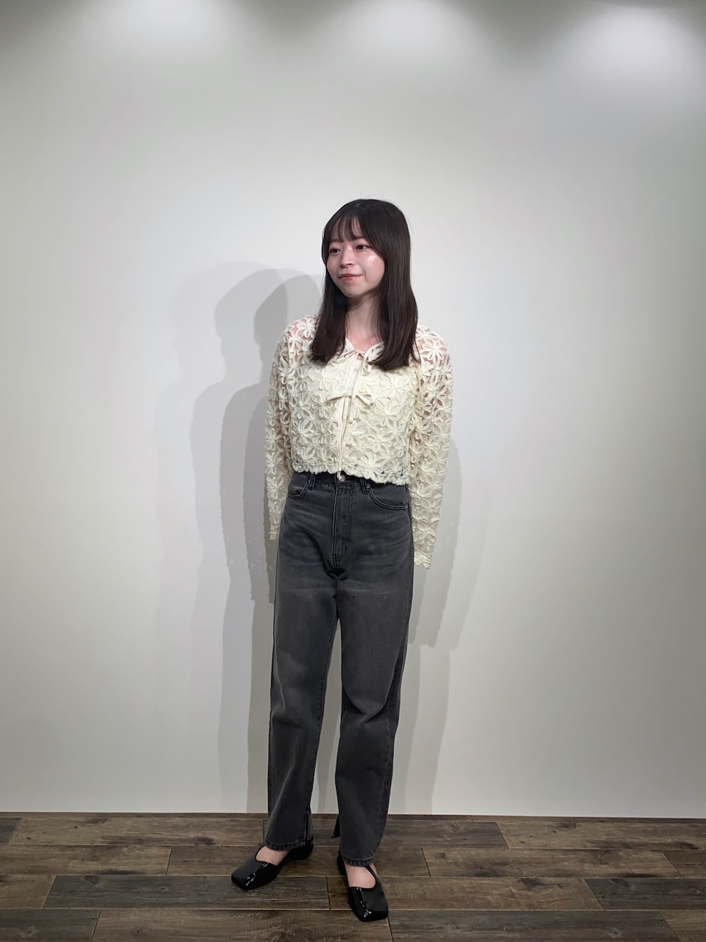 トップスが甘めなので黒のデニムでカジュアルに合わせてみました💡