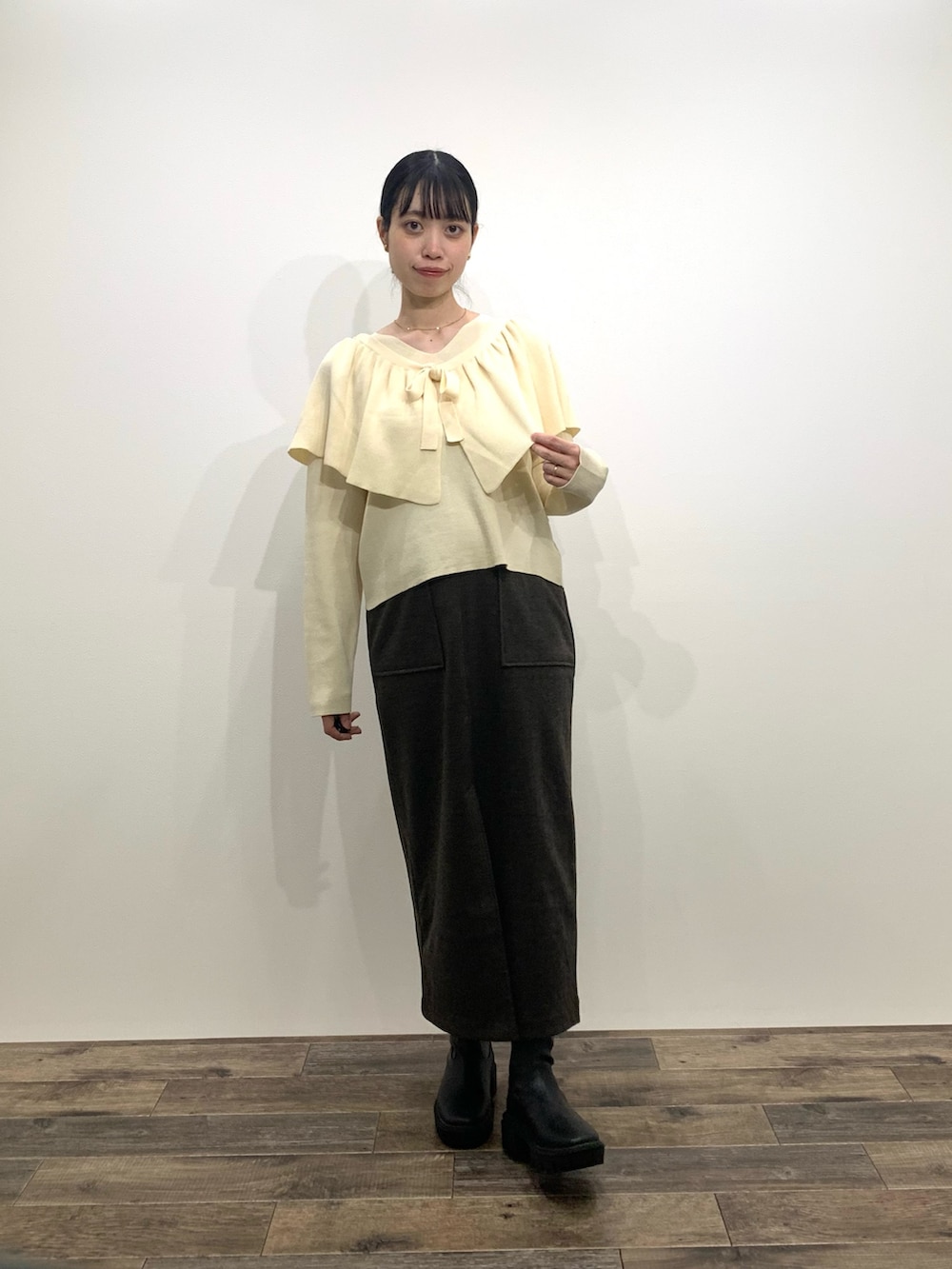 素材感は薄めでさらっと着用できるので今時期から着用しやすいニットです🧶