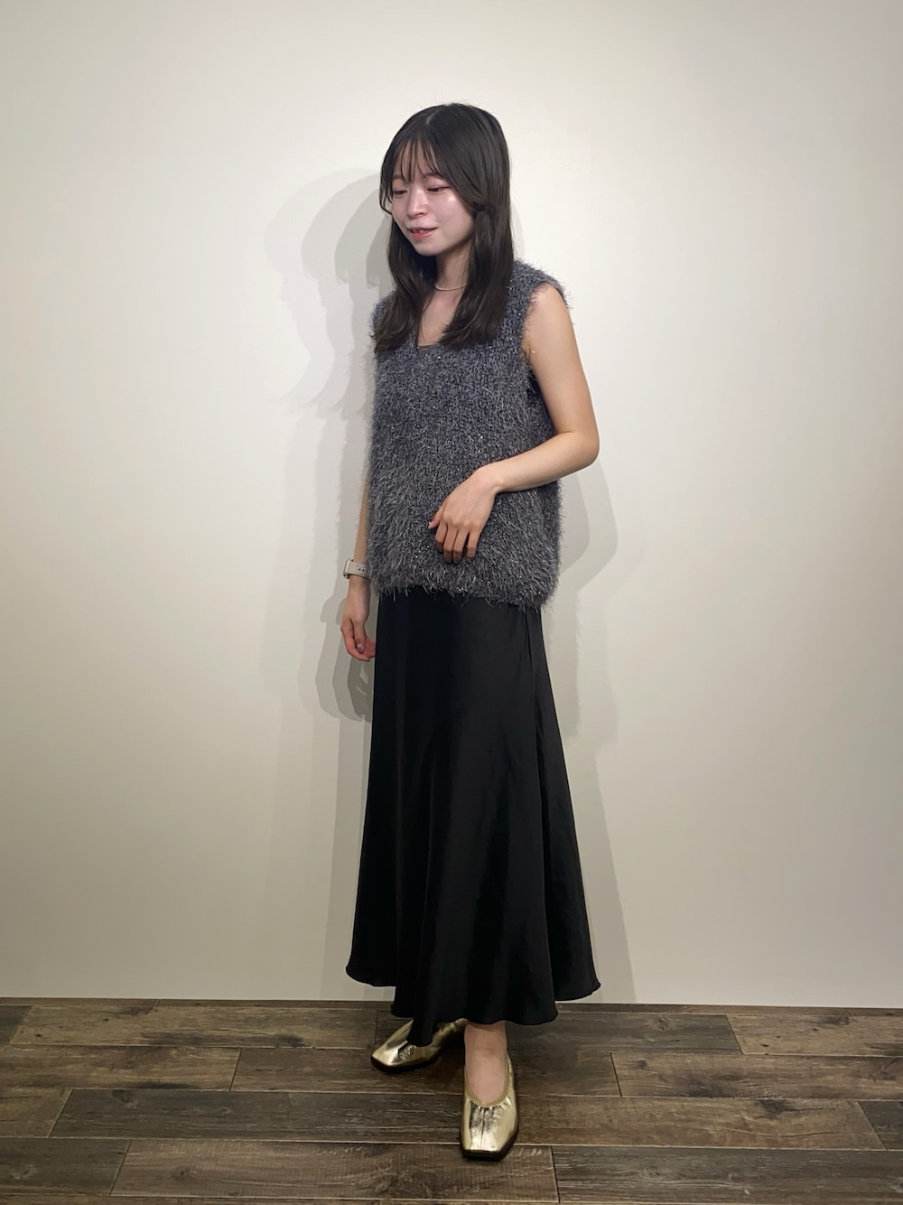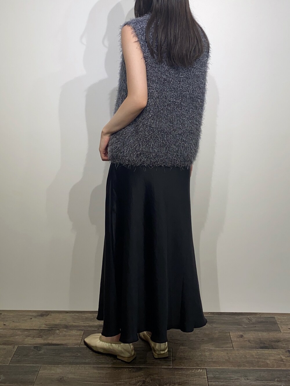 ニットベストはキャミソールの上から着てもチクチクせずに着ていただけます!