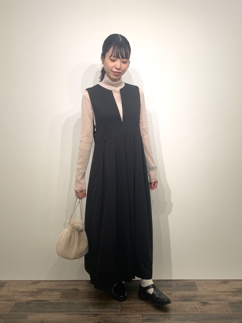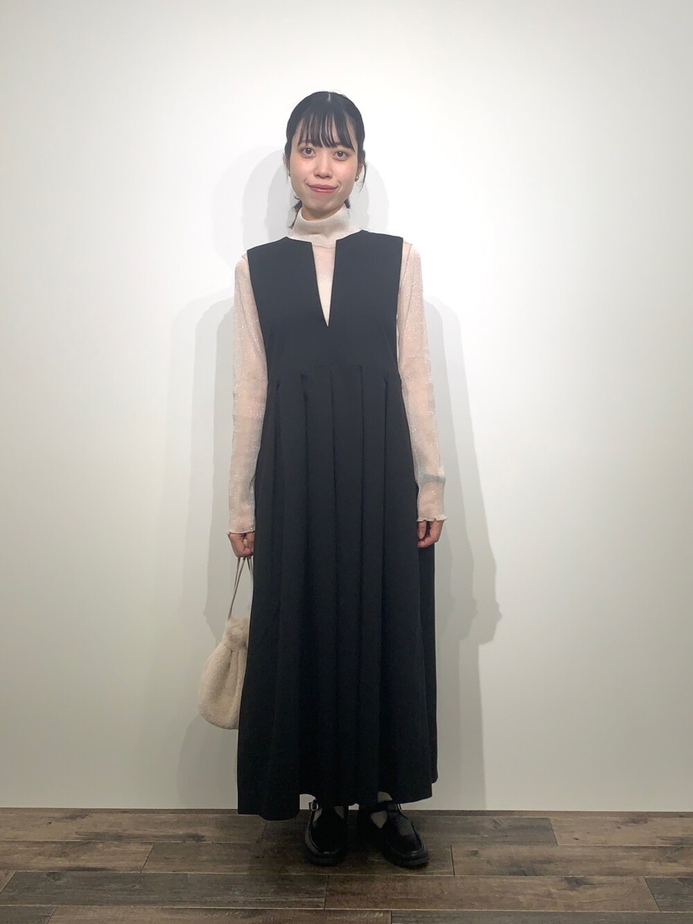 腕周りは広めに開いているのボリュームのあるニットやブラウスを重ねるのもおすすめです◯