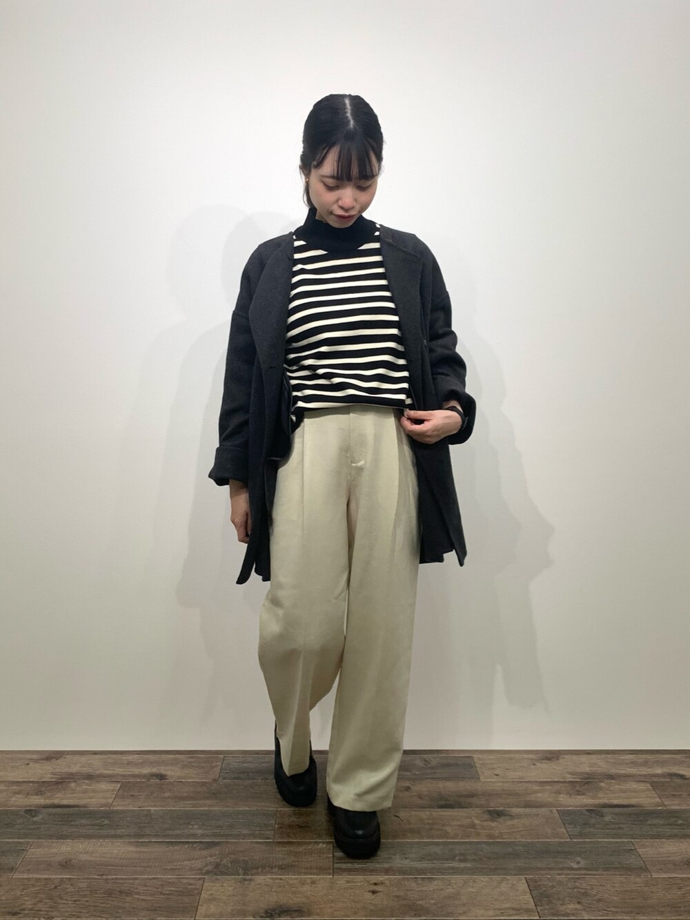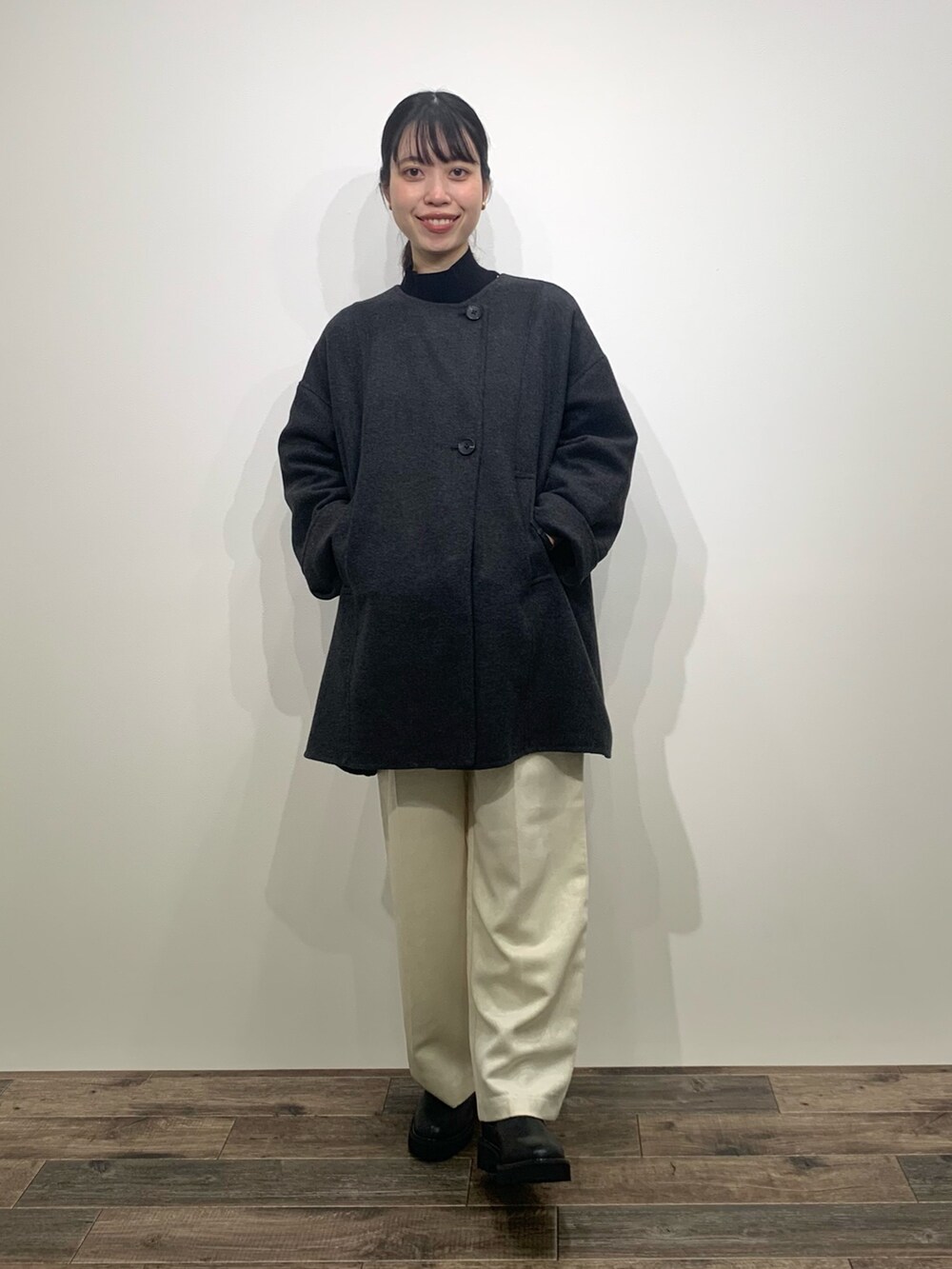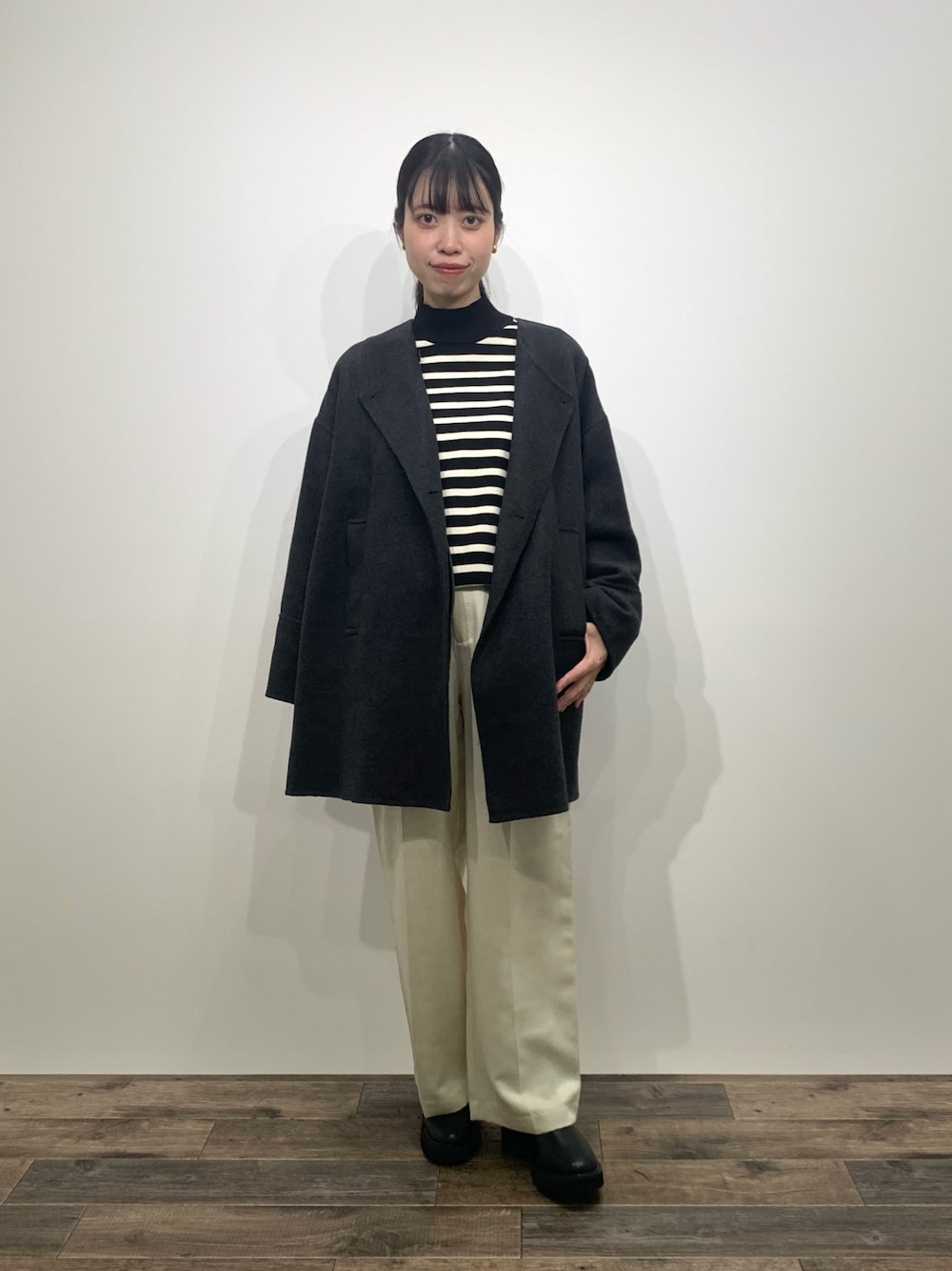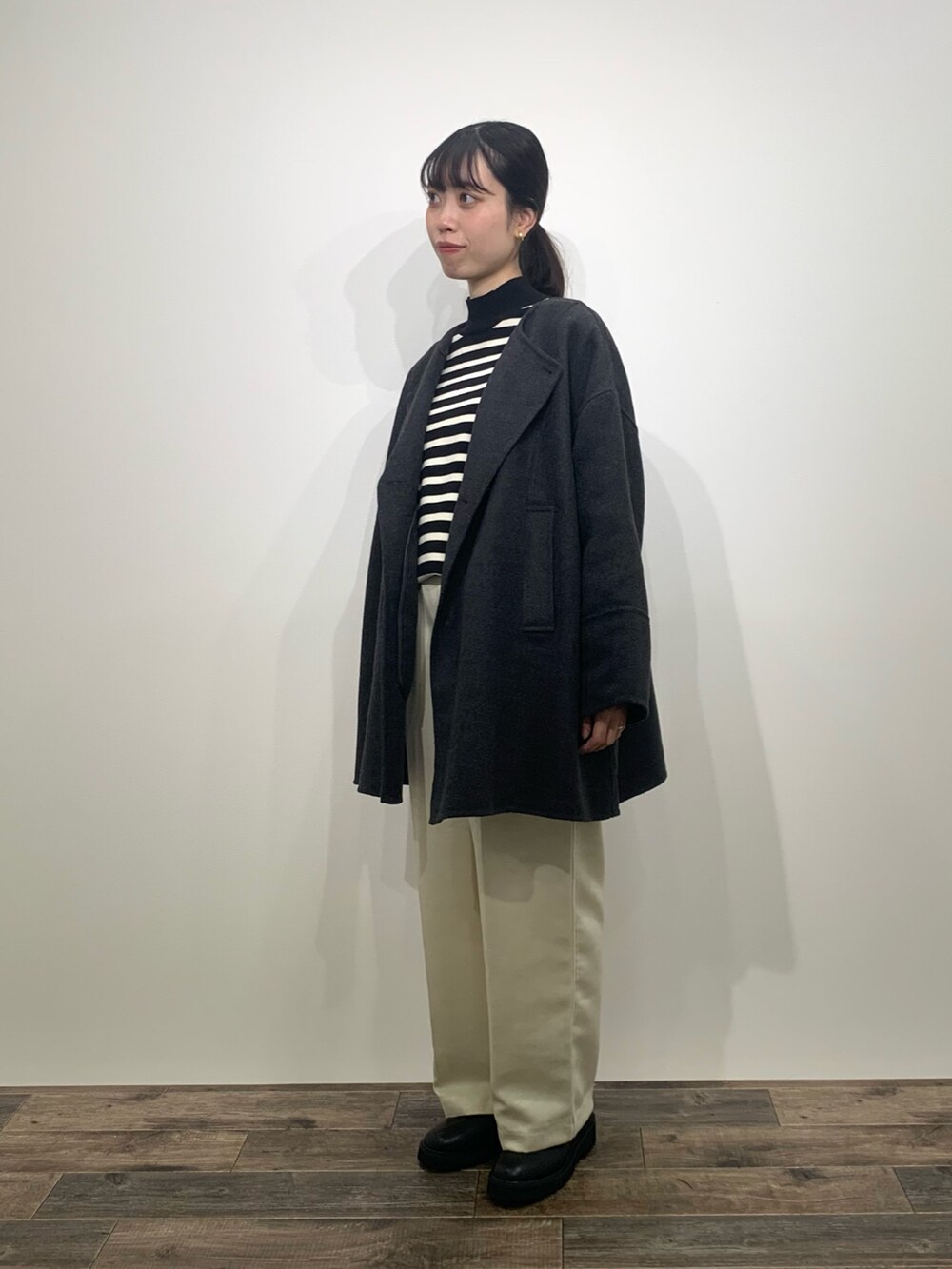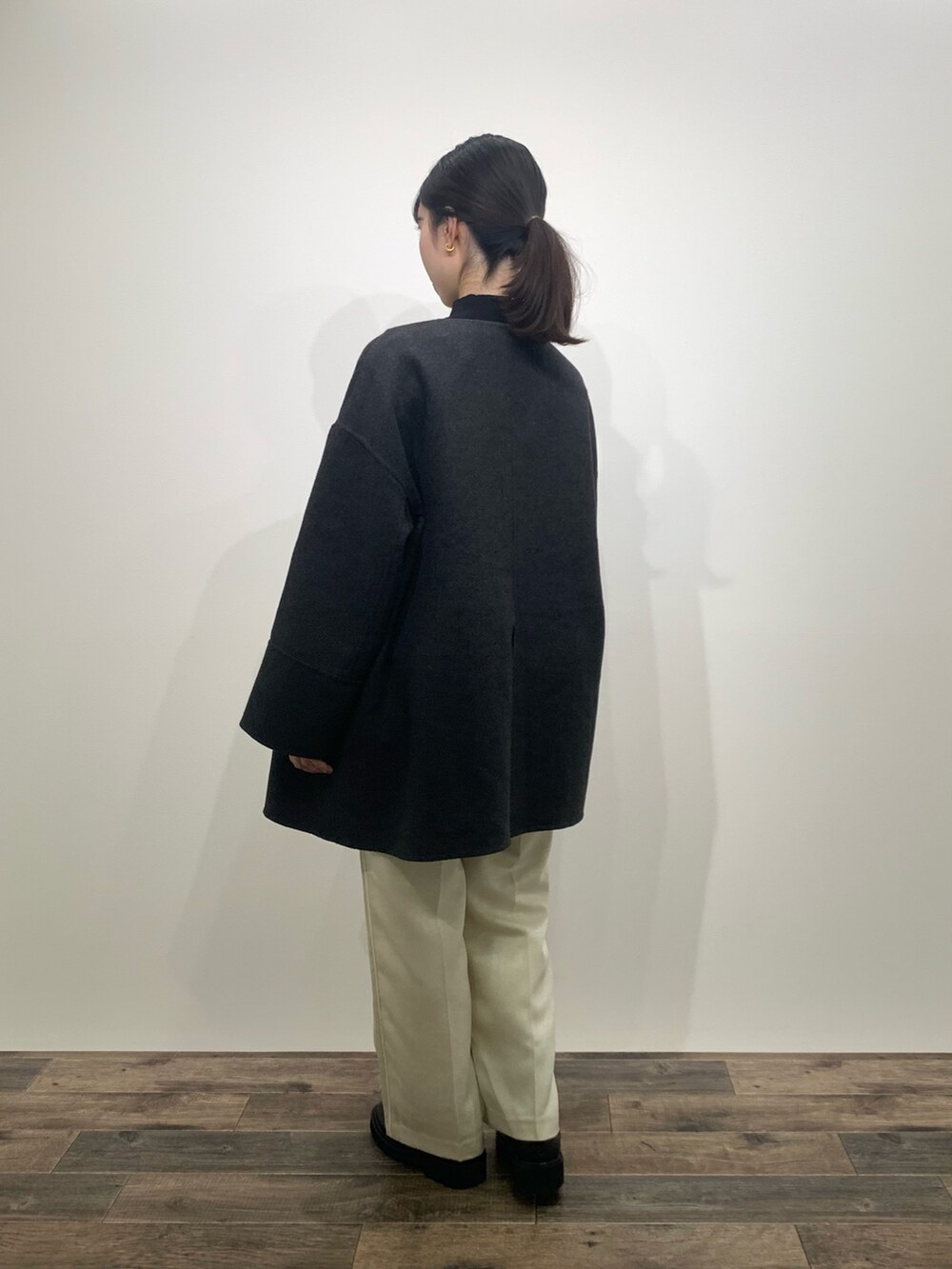 ノーカラーコートは裏地は付いてませんが、ウール混の素材で暖かく、袖周りもゆったりしてるので中に厚めのニットも着込めるサイズ感でした⛄️