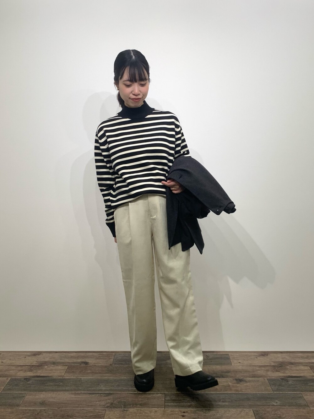 パンツはジャガード柄のものを着用していますが、よーく見ると柄がわかるくらいなのでボーダーと合わせても違和感なかったです◯