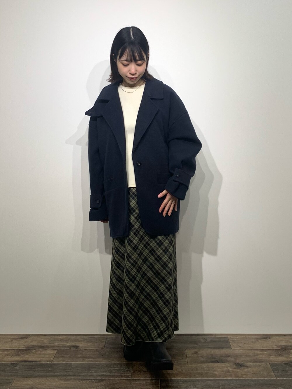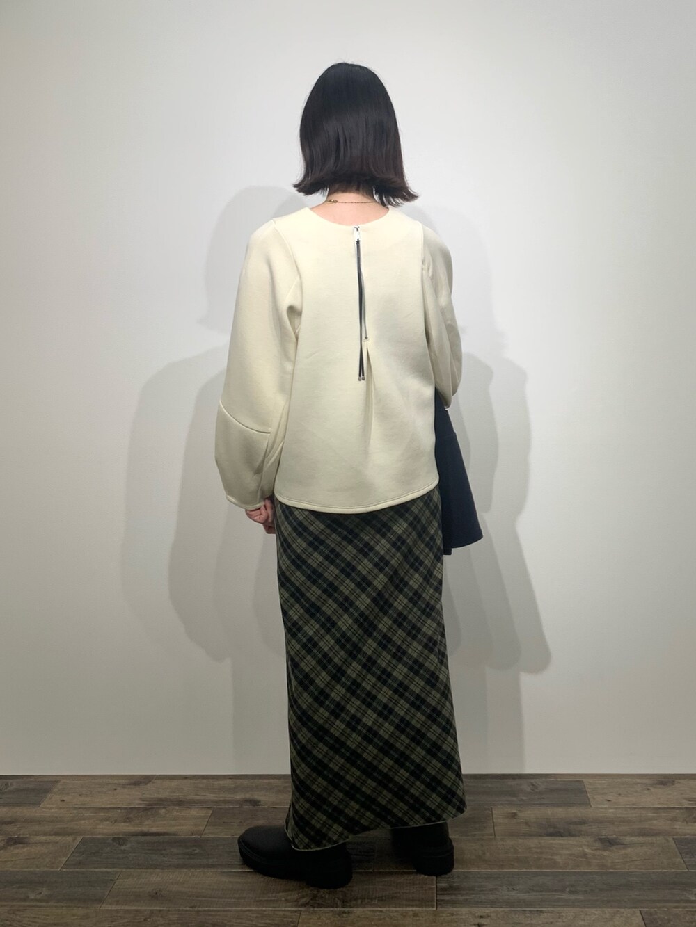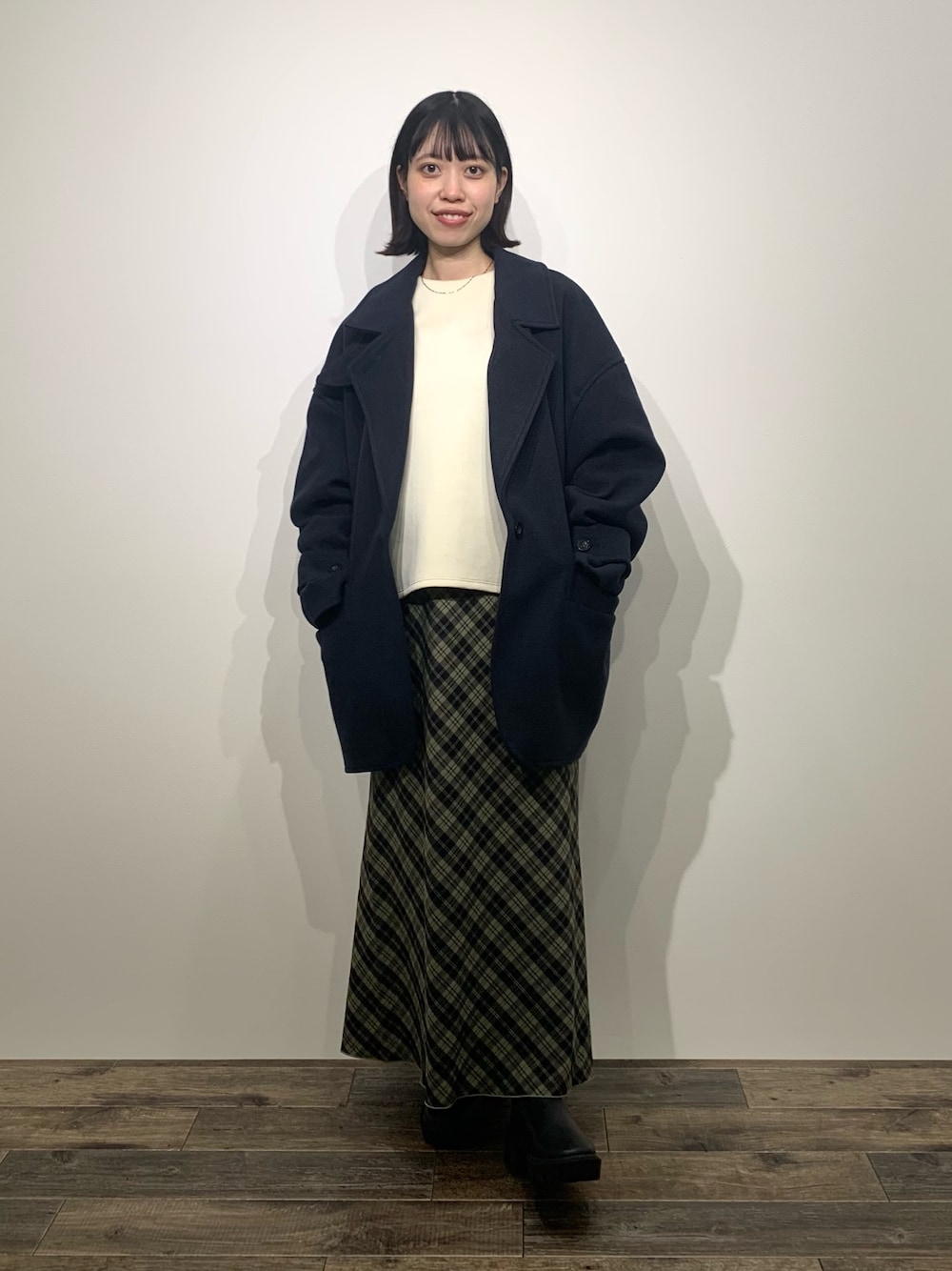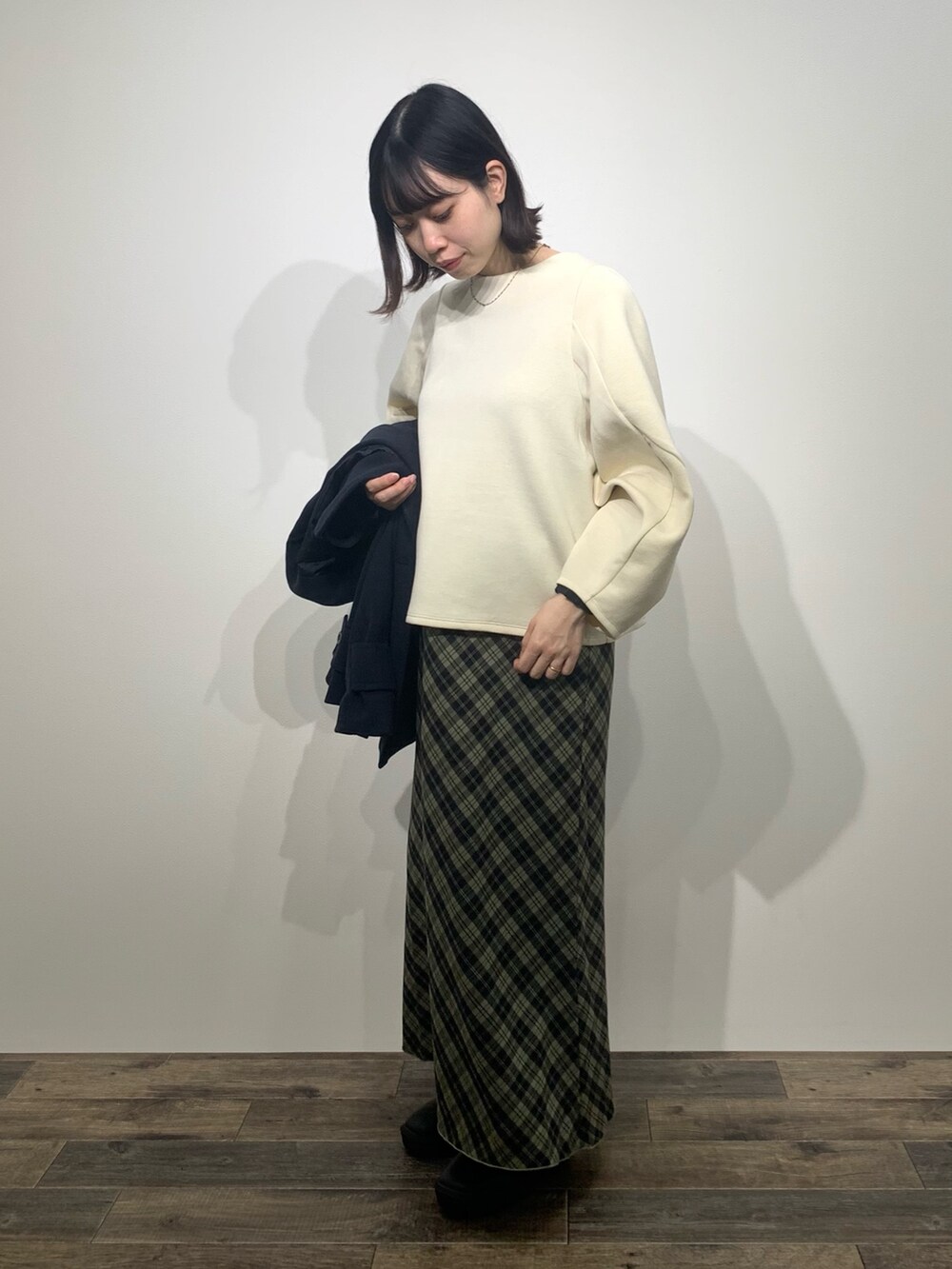 同じくKBFのチェックのスカートはフレアすぎずタイトすぎずでとてもきれいなシルエットです🍐