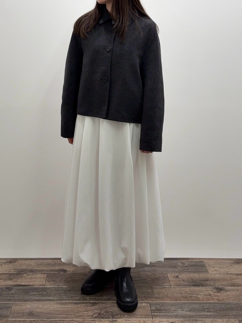 アウターは、丈が短いので低身長の方でもスッキリ見えます♩