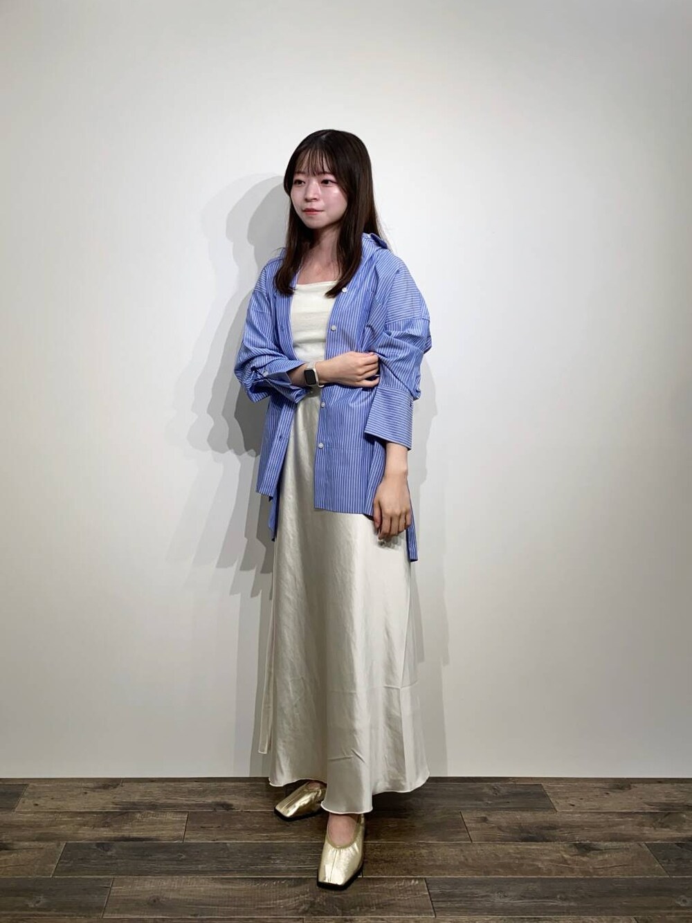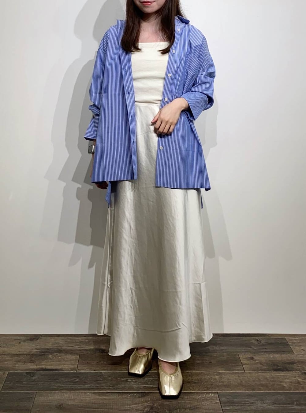 サテンスカートと少しきれいめに合わせました♩