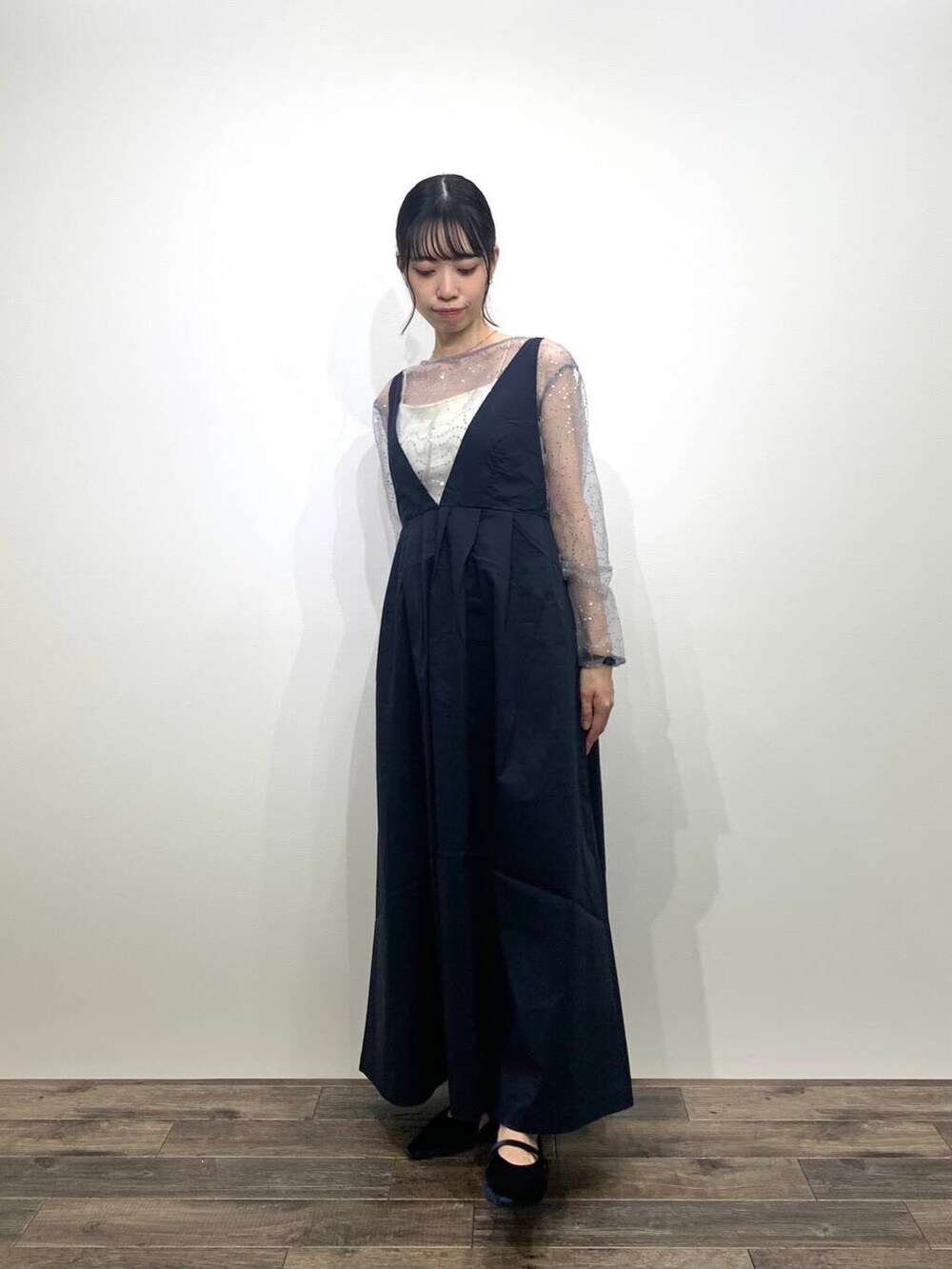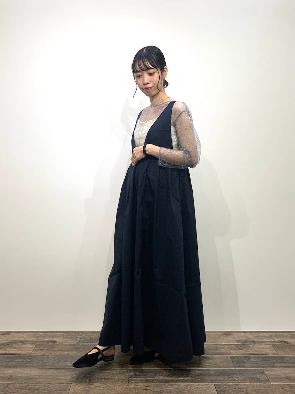 足首は隠れるくらいの長さでしたが、ぺたんこのシューズでも着用できました👏🏻