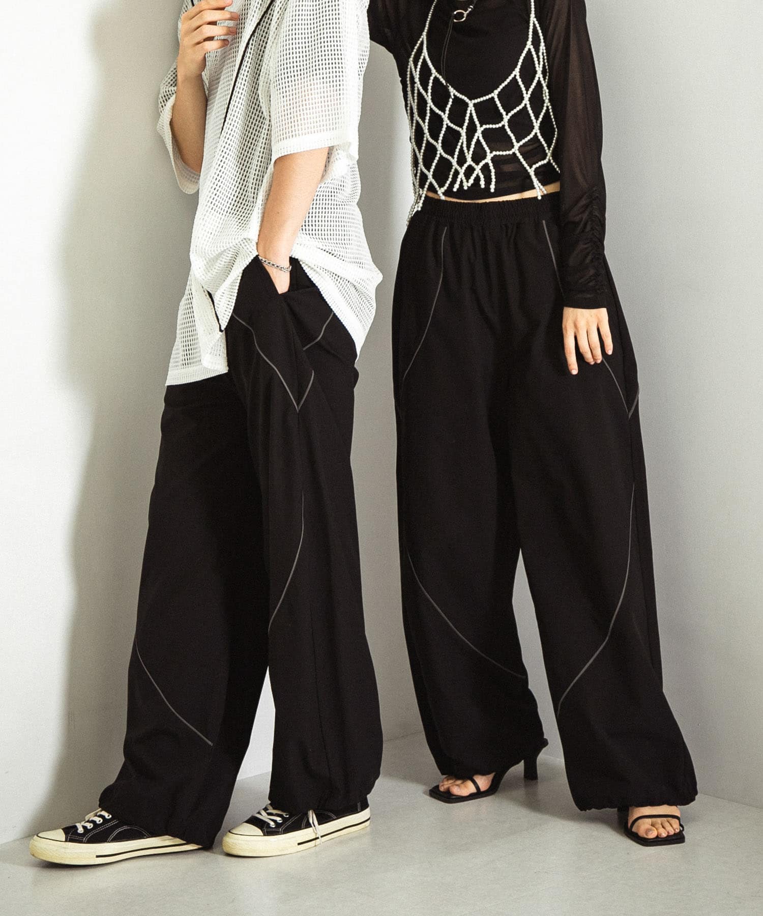 『ユニセックス』『セットアップ対応』 ブロックドトラックワイドパンツ