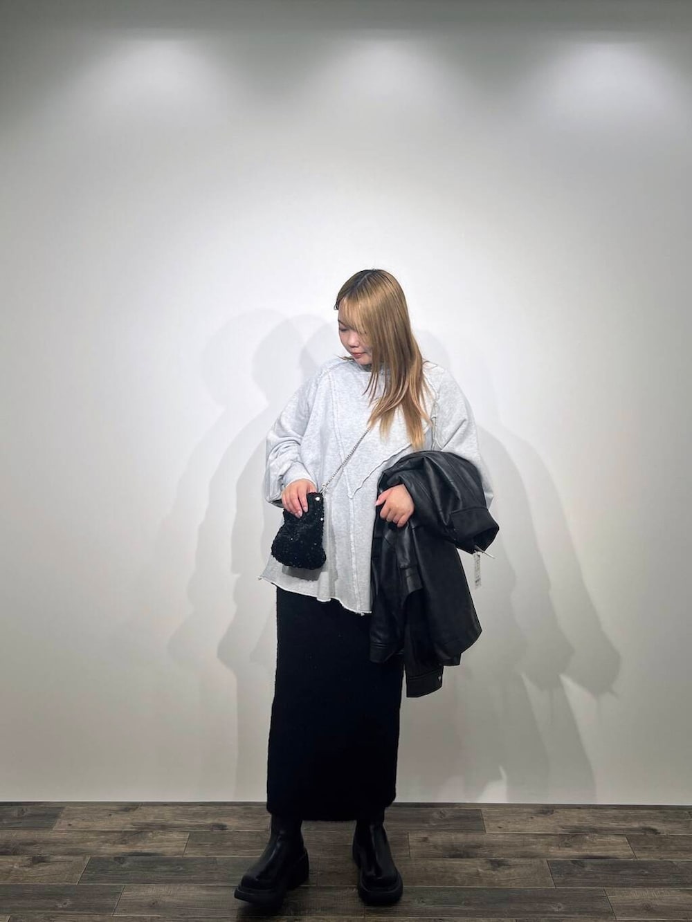 ヴィンテージルーズスウェット×ラメシャギーニットスカート🪄