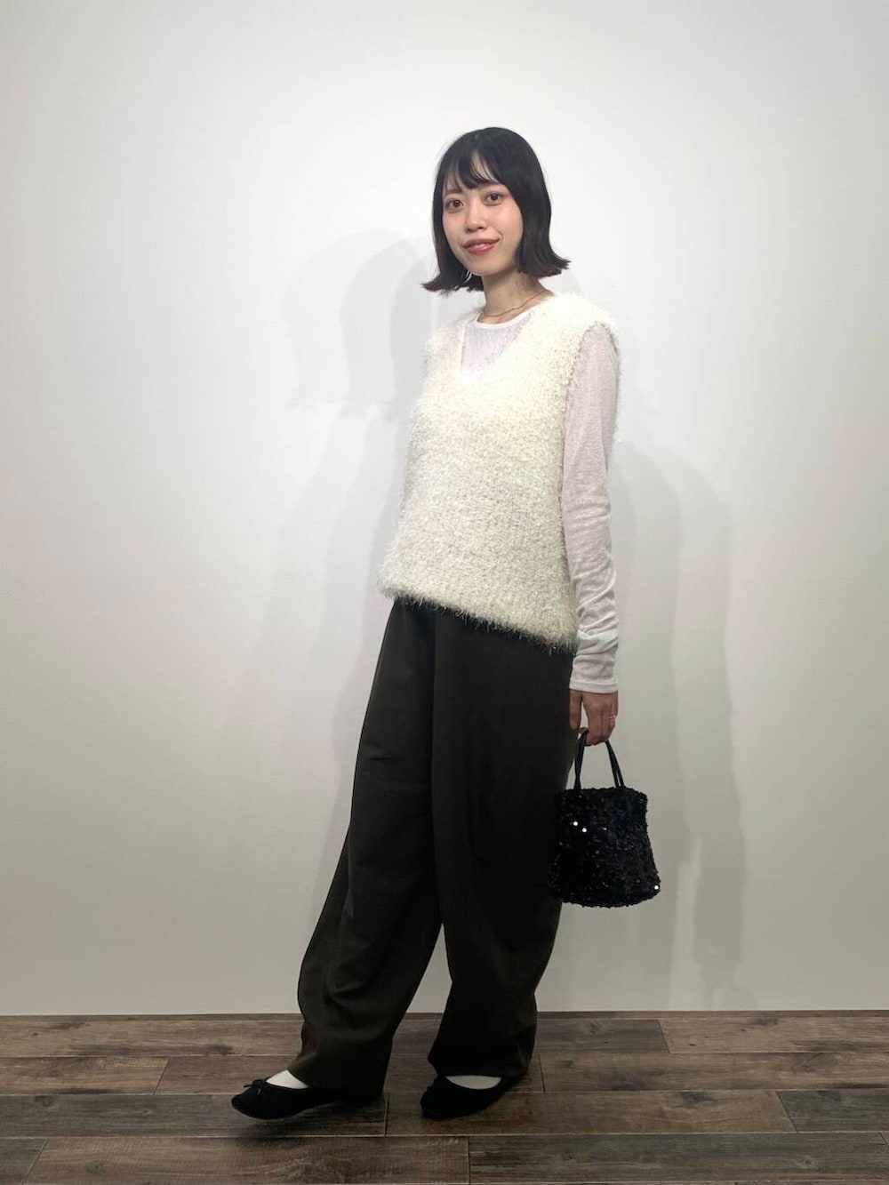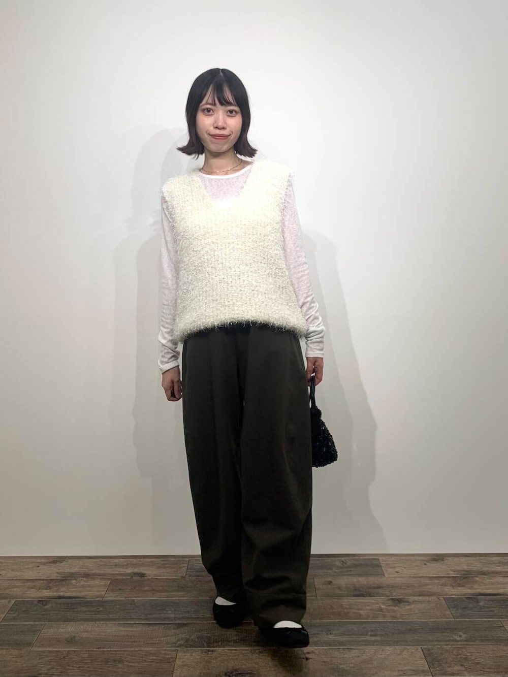 ベストに合わせたバレルパンツ(丸みのあるパンツ)は、てろっとした柔らかい素材感で膨らみすぎず、すっきり見せてくれました🫶🏻