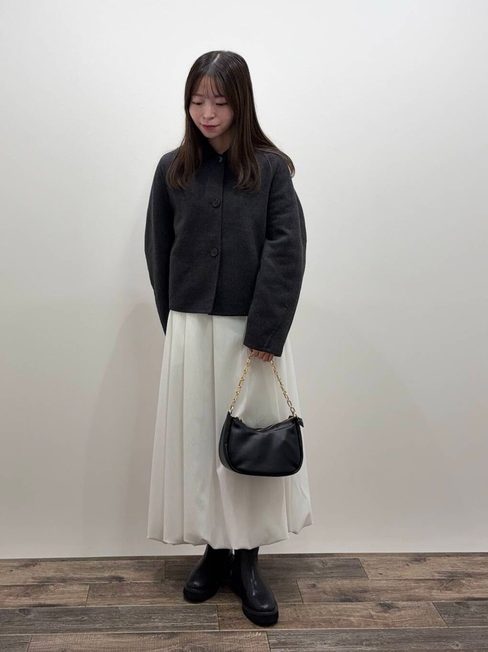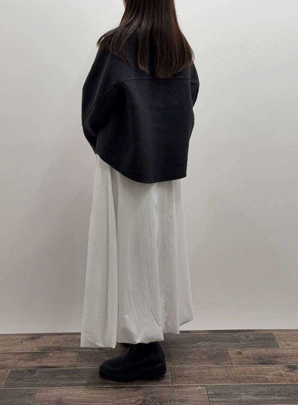 アウターは、丈が短いので低身長の方でもスッキリ見えます♩