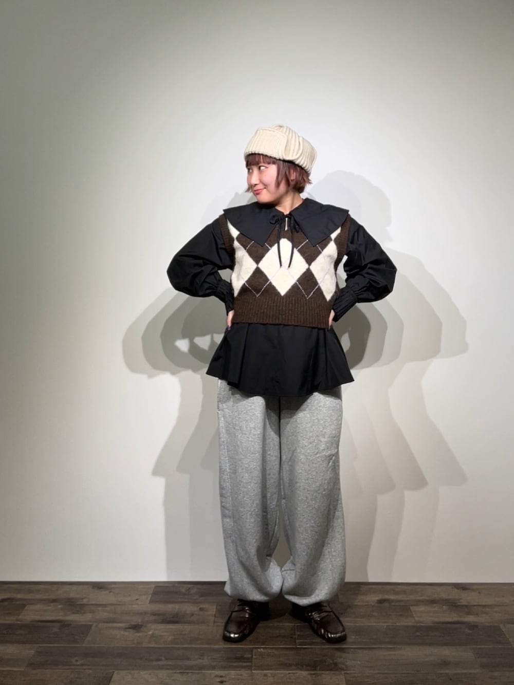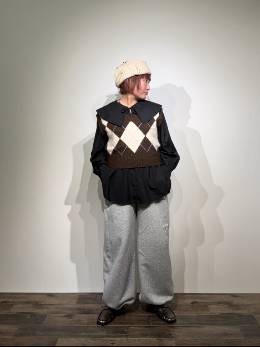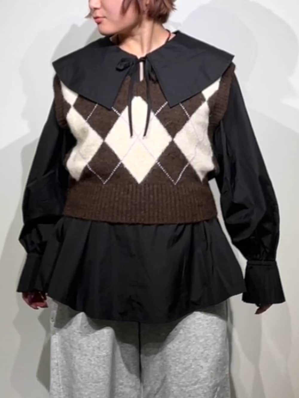 今回は、黒のキレイめなブラウスと、秋らしさを感じるKBFのブラウンのニットベストを合わせてみました!🤟🏻🤎✨