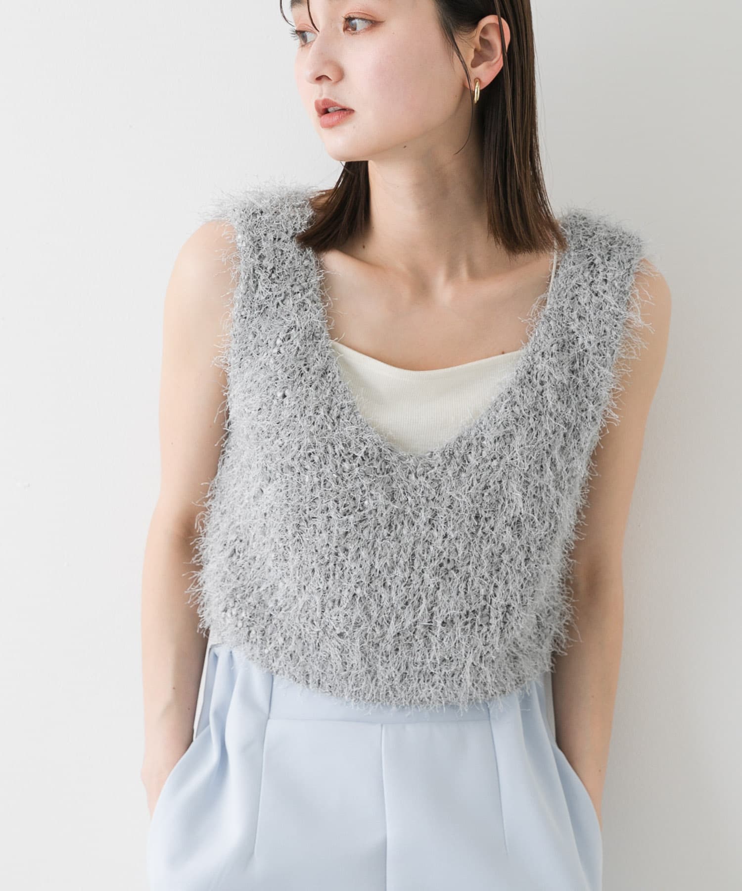 クロップドフェザーヤーンニットベスト