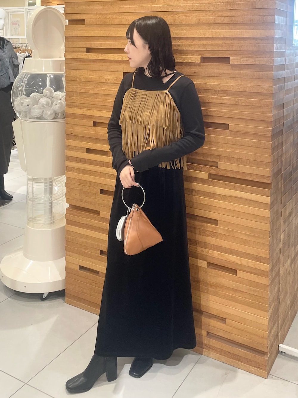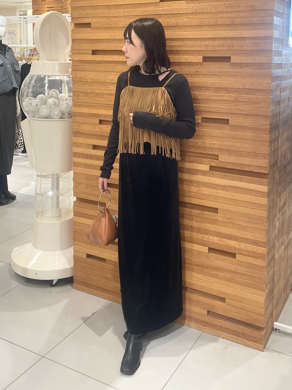 フリンジキャミは秋っぽくキャミ1枚合わせるだけで一気に抜け感が出るのでおすすめです