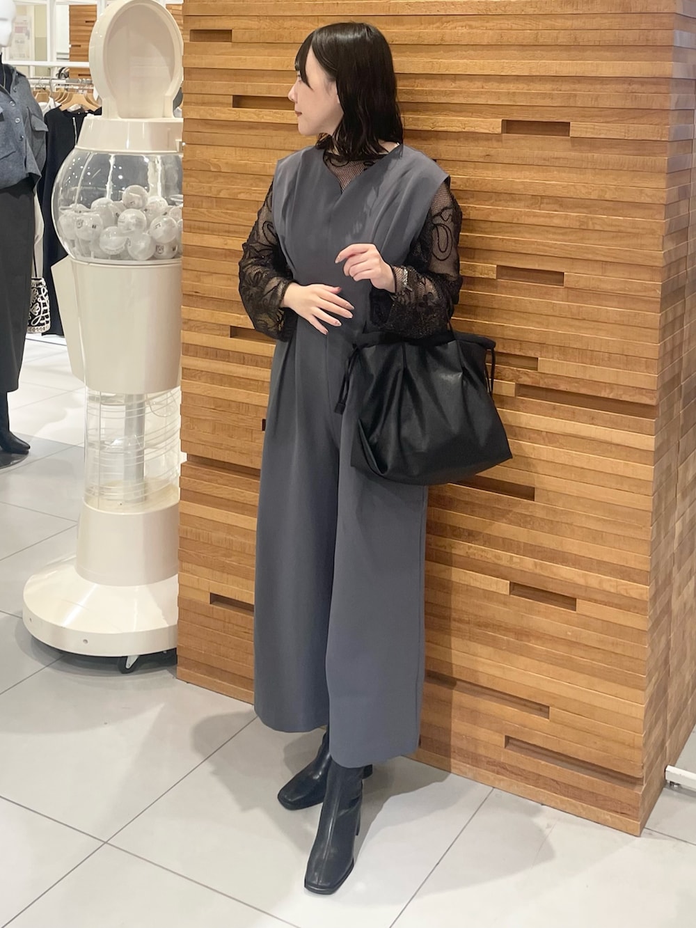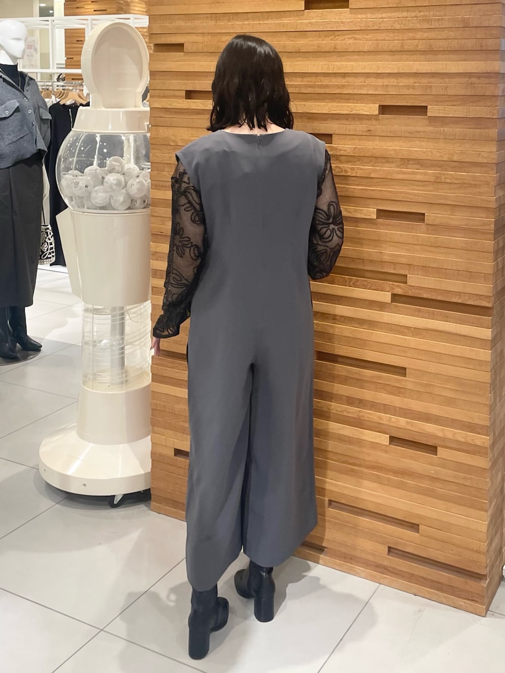 グレーのロンパースはウエストにタックが入っているのでスタイルアップ抜群で脚長効果も備わってるので優れものアイテムです🩶