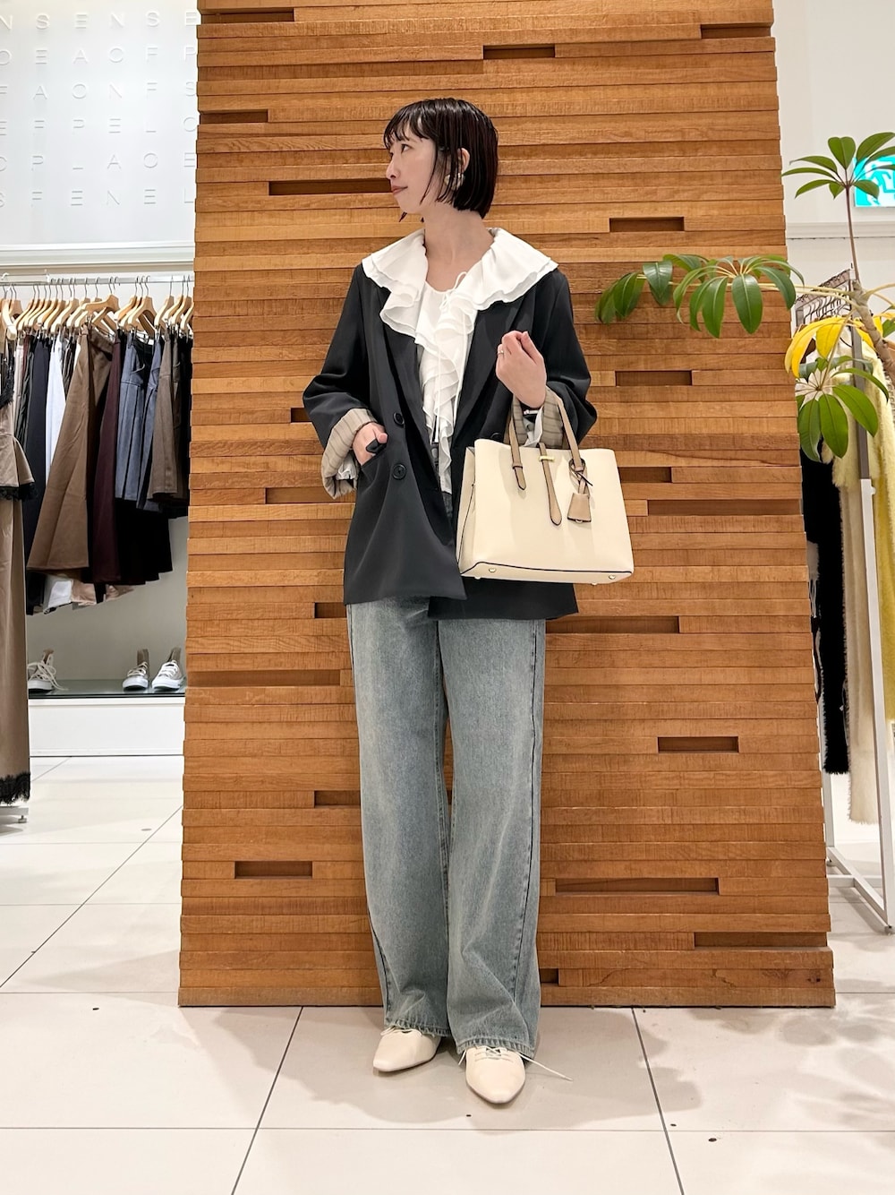 クロップド丈で上半身がコンパクトにまとまるので、ボリュームのあるボトムが好相性です❣️