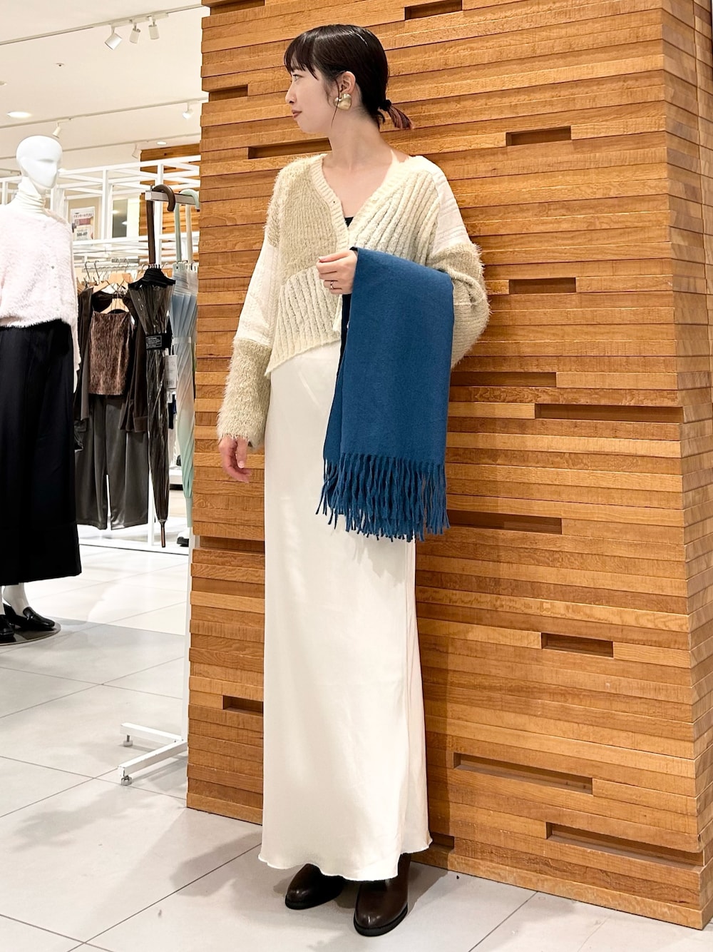 腰巻きや襷掛けのように小物として使うこともできるため、秋服で迷っている方には1枚持っていて欲しい、おすすめなアイテムです⭕️