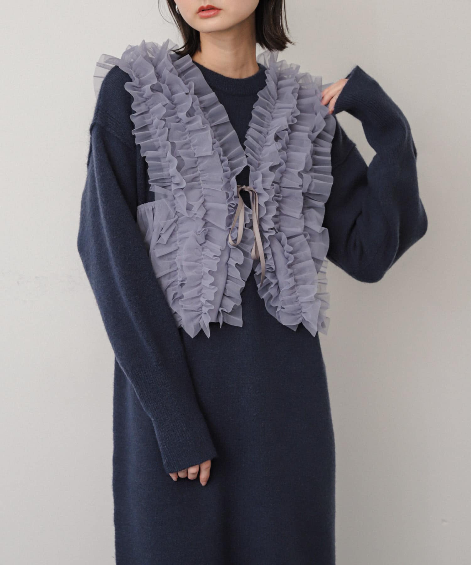 SENSE OF PLACEチュールベストレイヤードニットワンピース