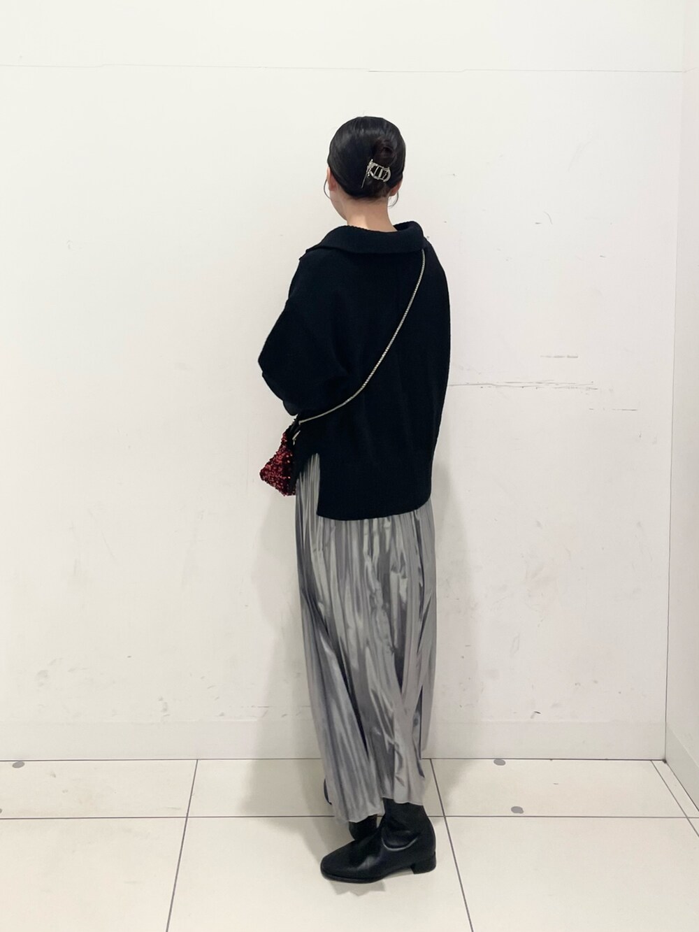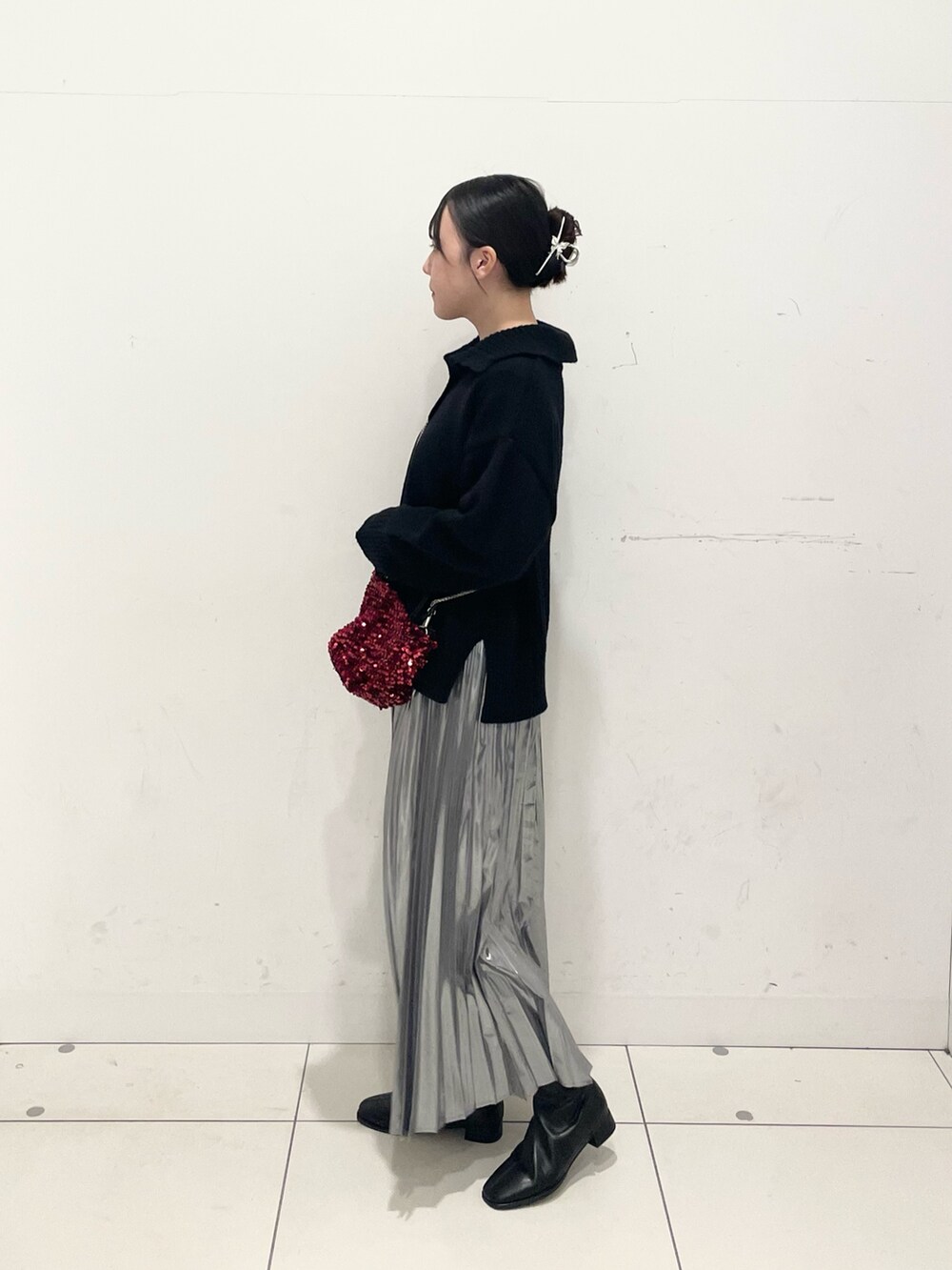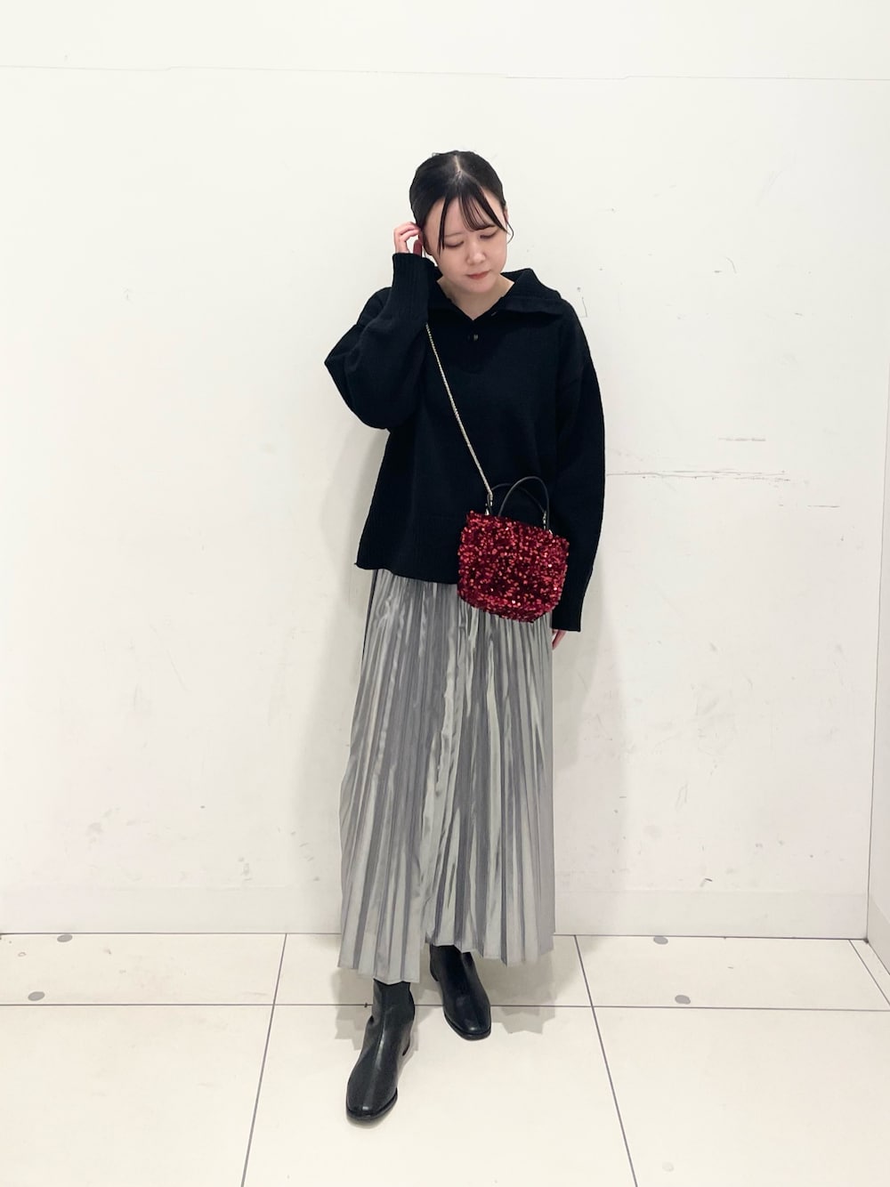 差し色ひ赤のスパンコールバッグを使いました❤️🔥