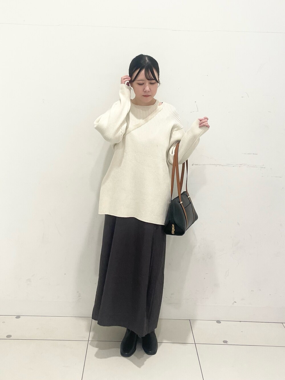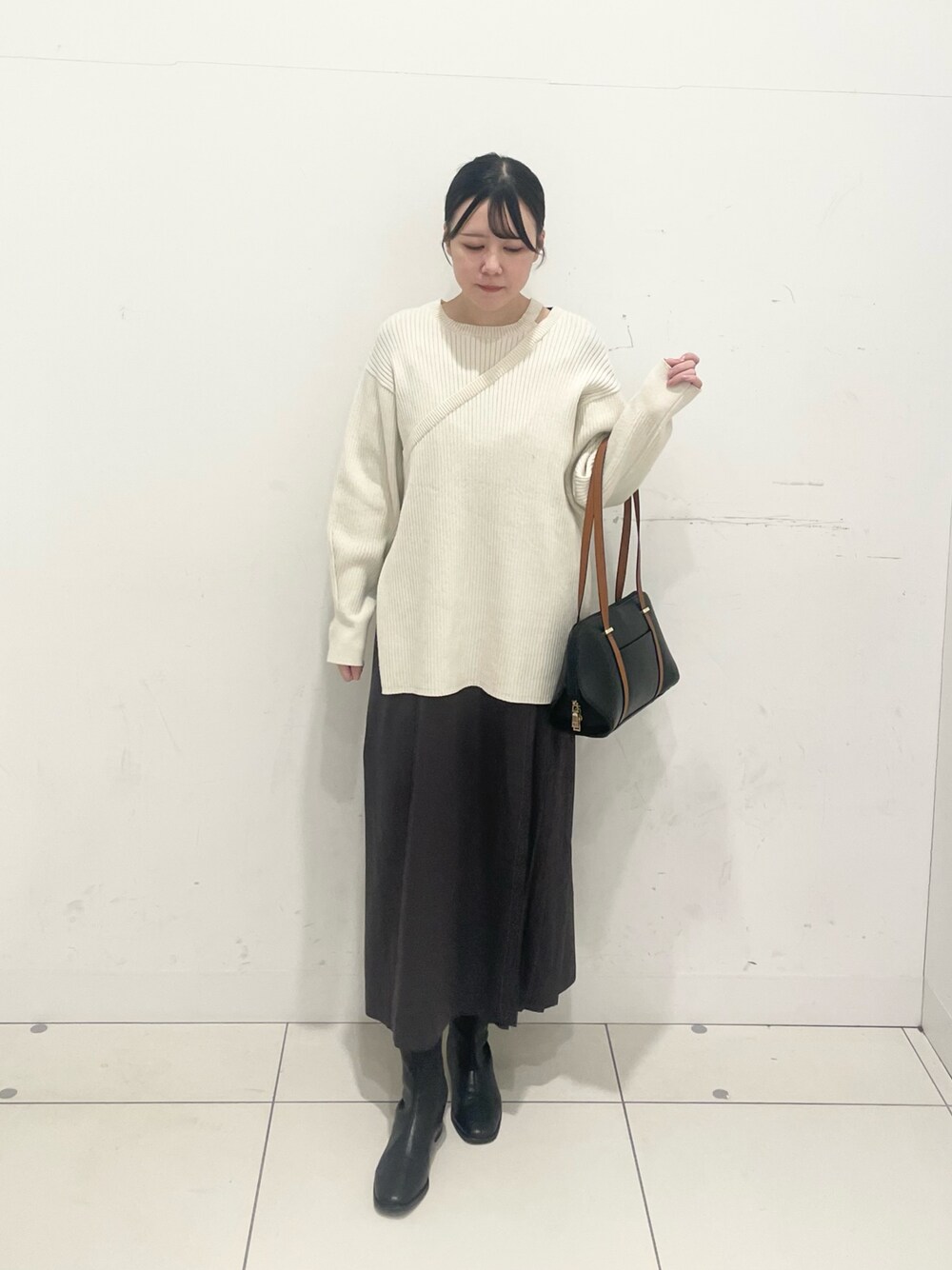 レイヤードミドルセーターの少し肩が見えるところがポイントです◎