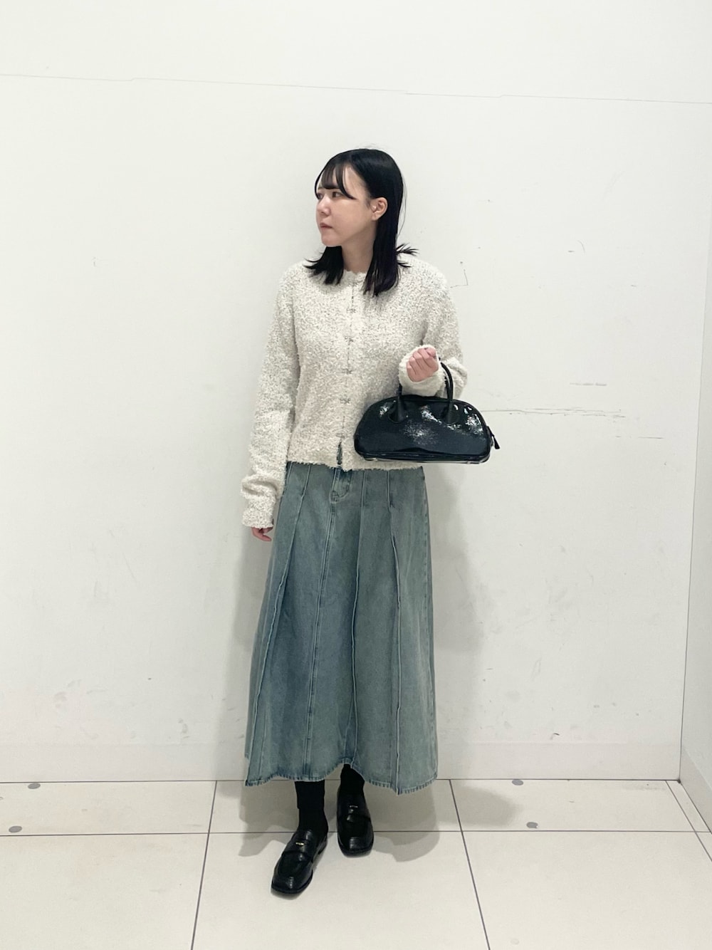 今回は春物のラメリボンクルネックカーデを着てみました