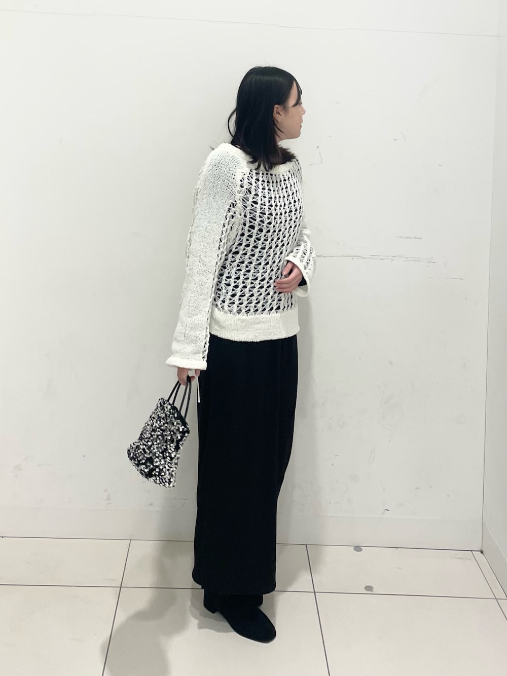 デザインネックカットワンピースとチュールヤーンメッシュセーターを合わせてこなれ感を出してみました🫧