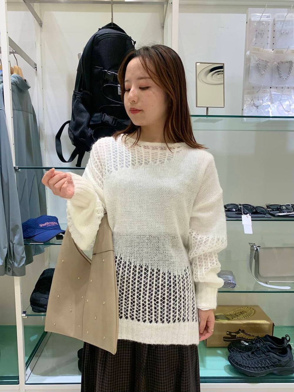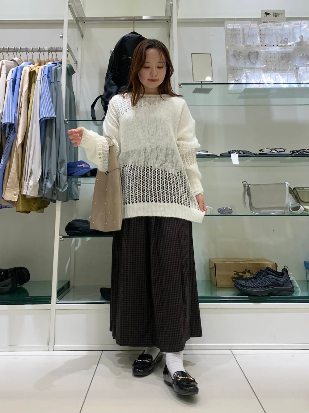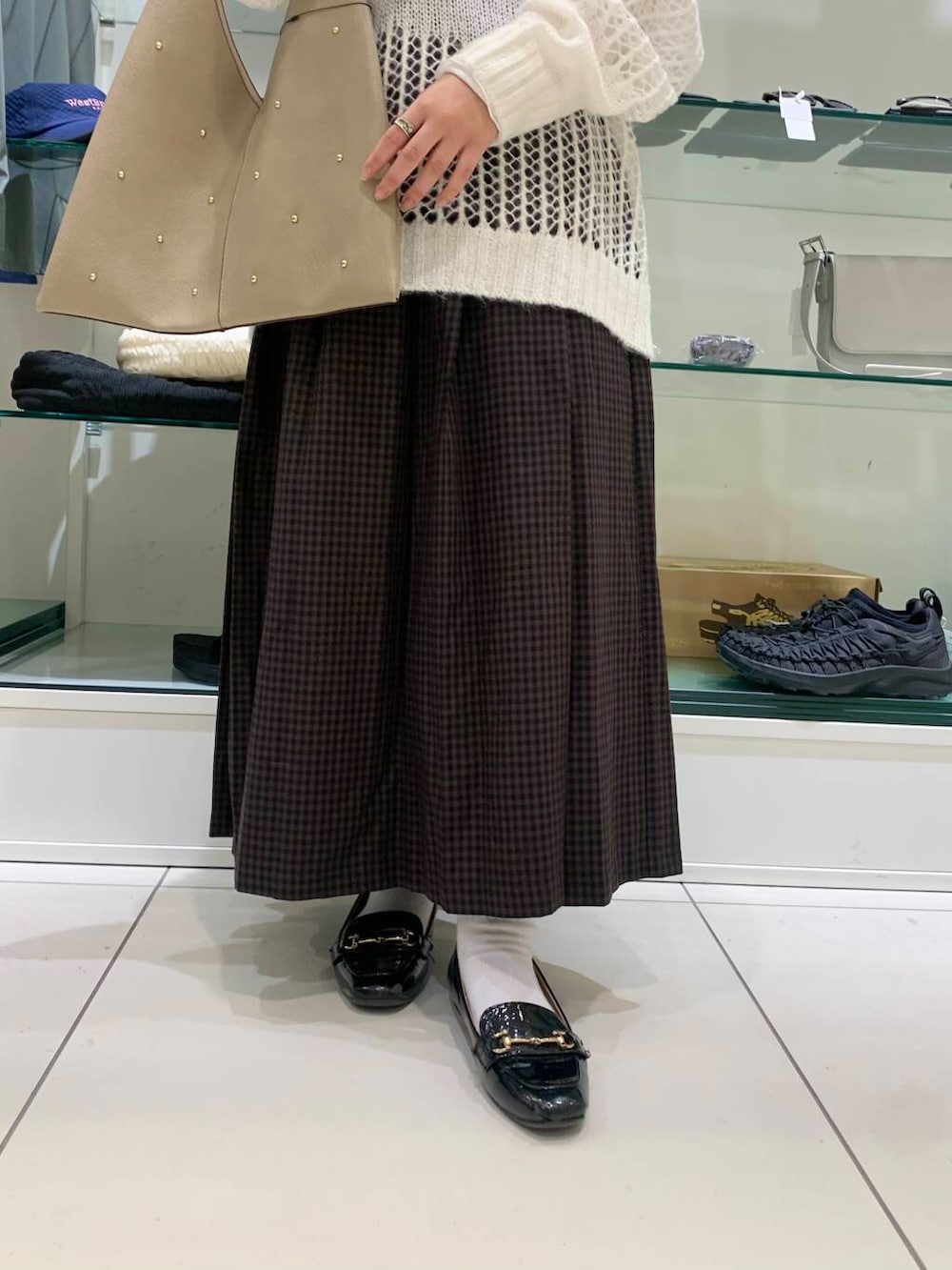 チェックのボトムスとセーターで秋らしくコーデを組んでみました☺︎