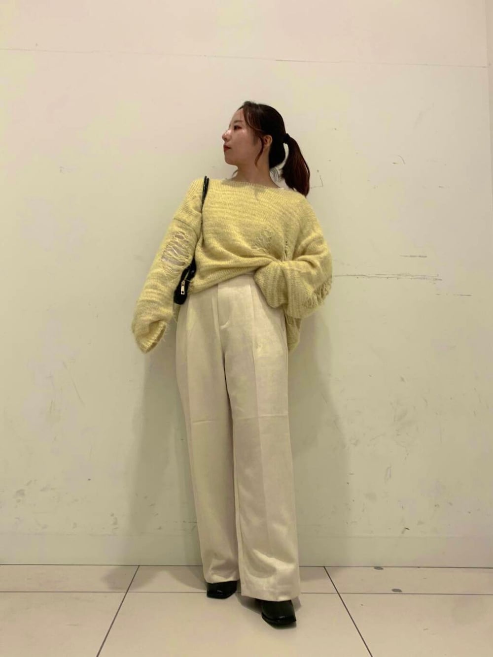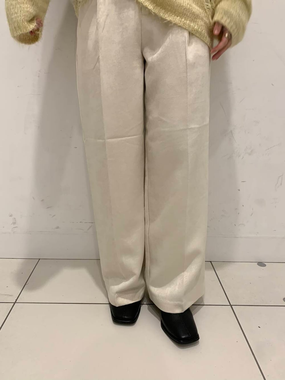 パンツのサテン生地で綺麗めカジュアルに組んでみました♪