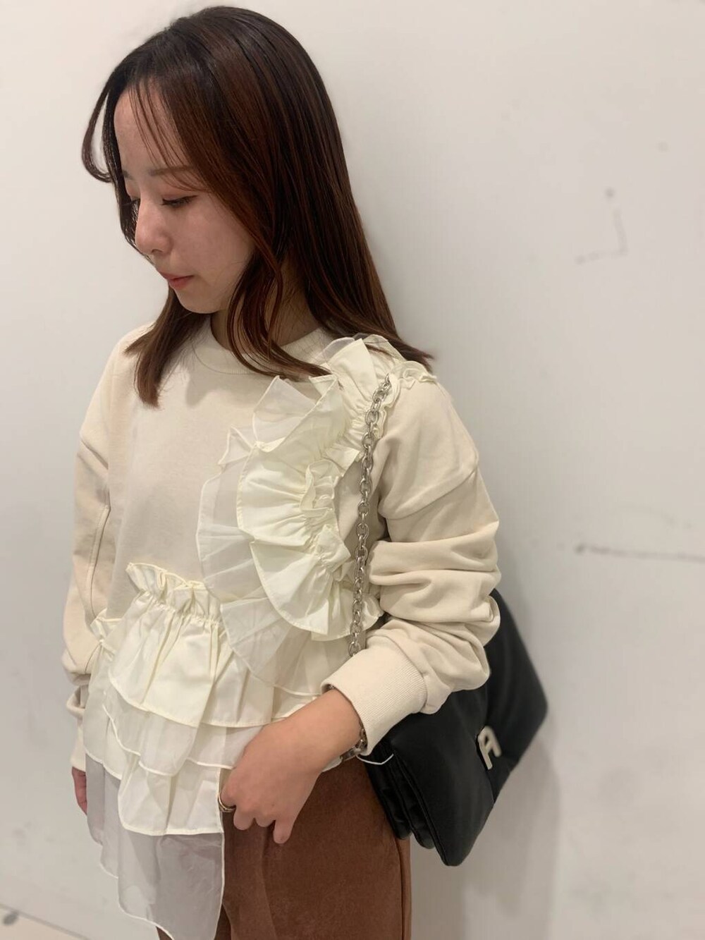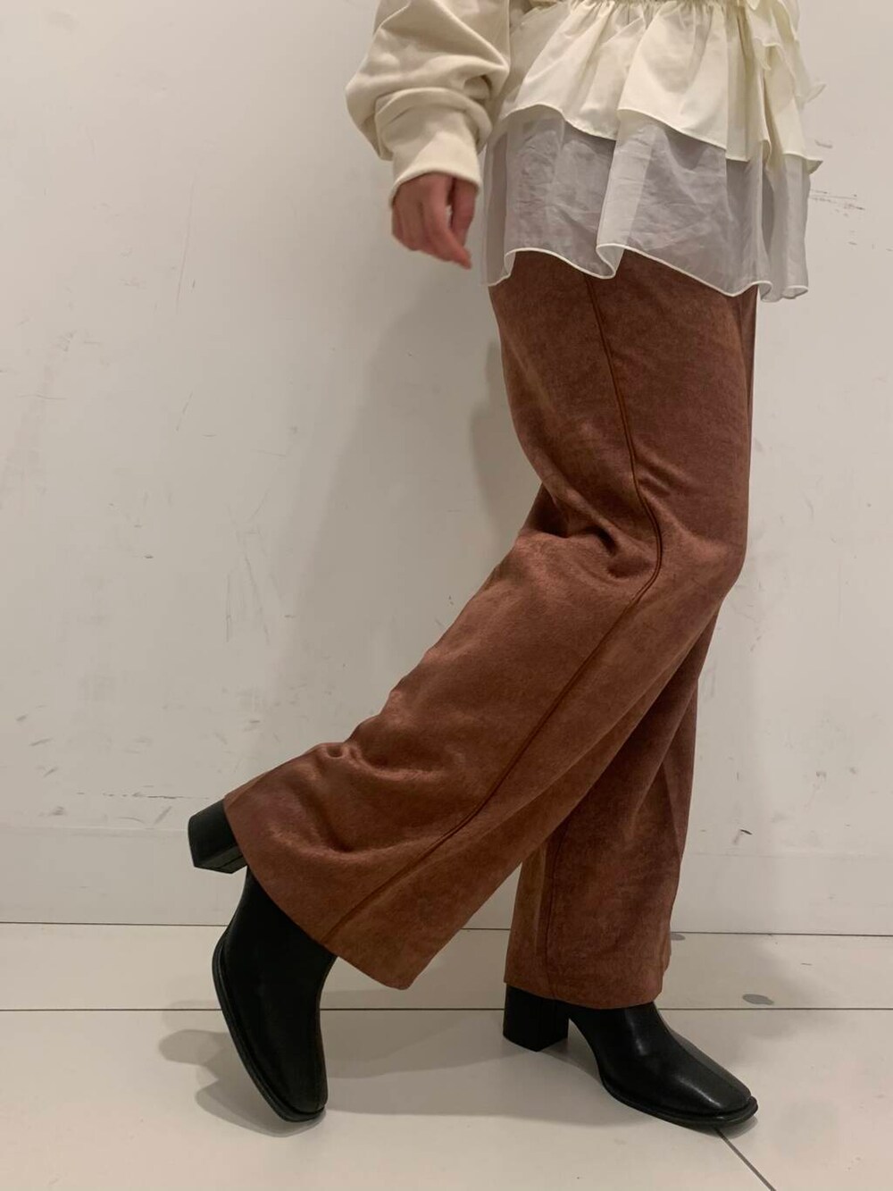 フリルとパンツで合わせることで大人可愛くコーデを組んでみました🤍