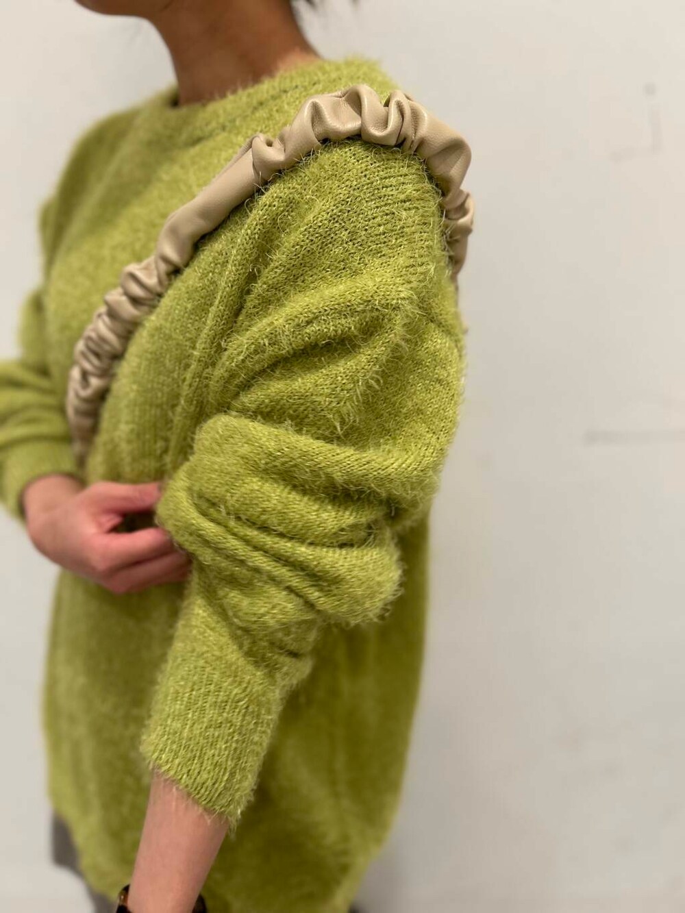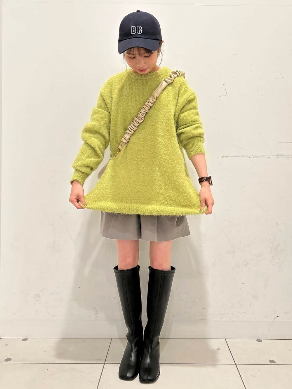 毛足の長いウォーミーな糸で編み立てたクルーネックニット⭐︎