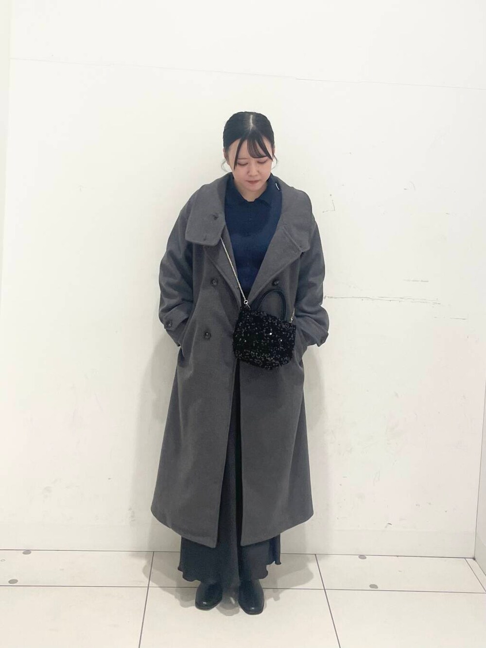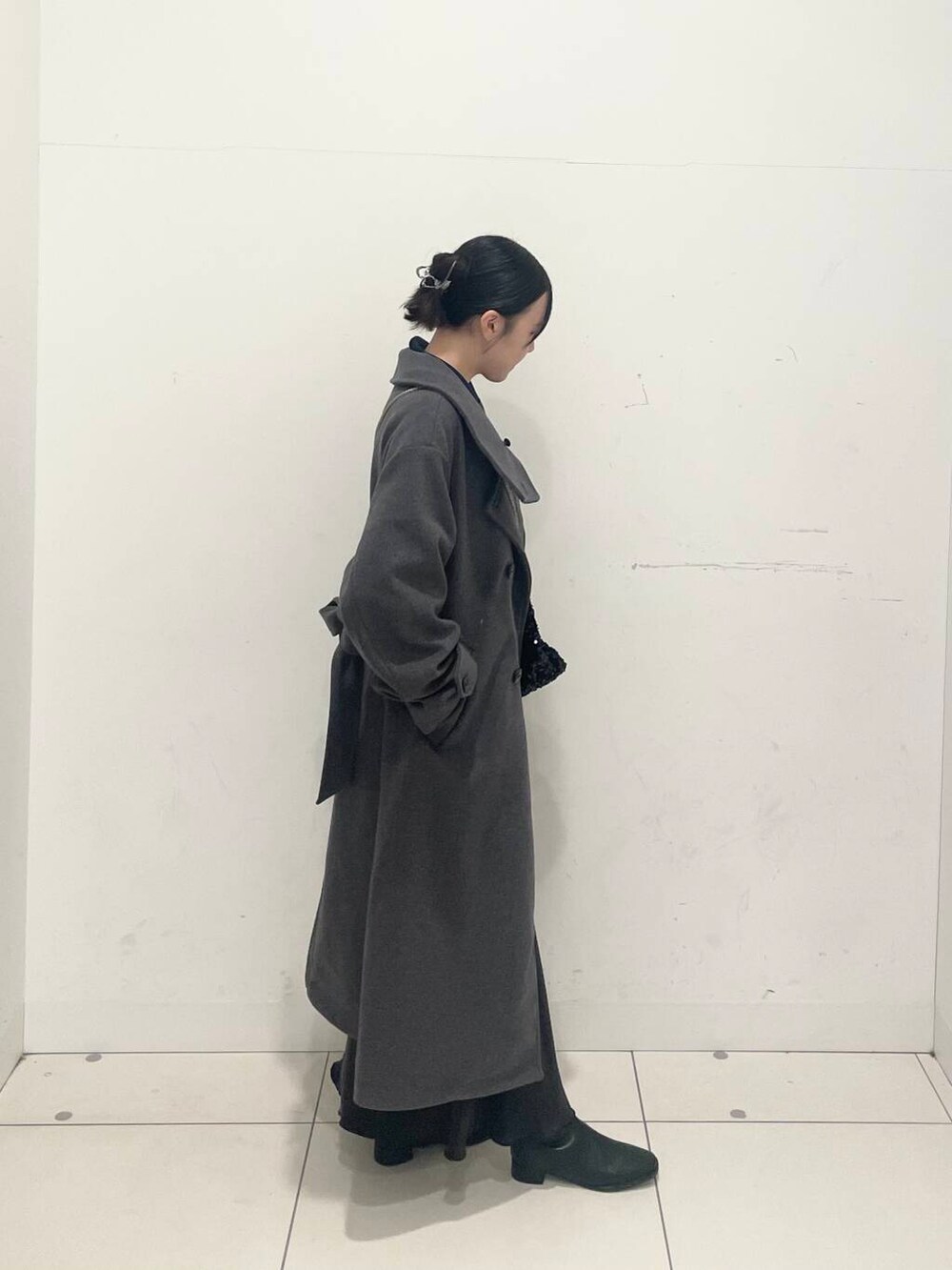 今回は人気のスタンドカラーロングコートのグレーのカラーを着てみました🩶