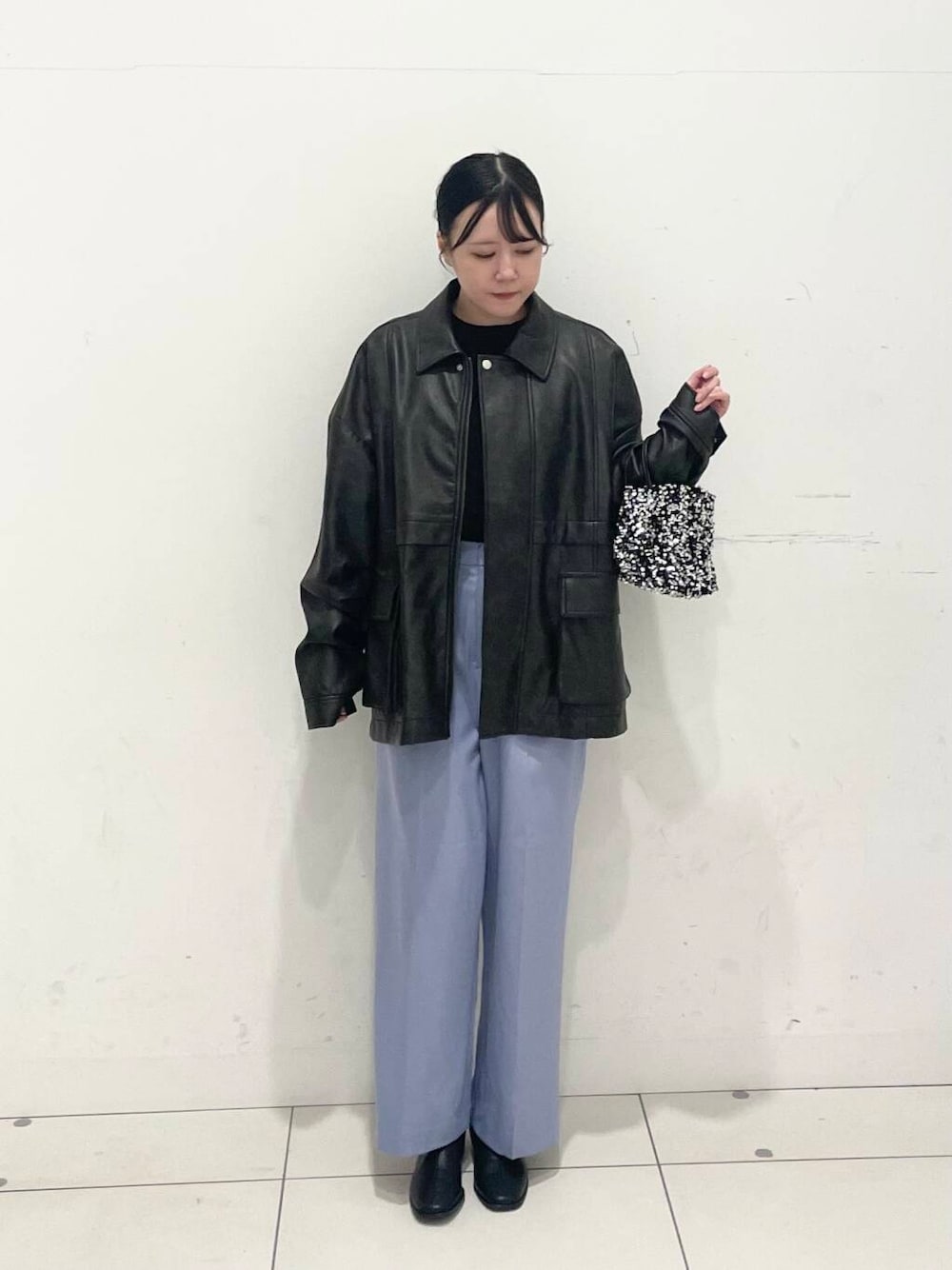 差し色にストレートスラックスパンツのパープルを入れてみました💜
