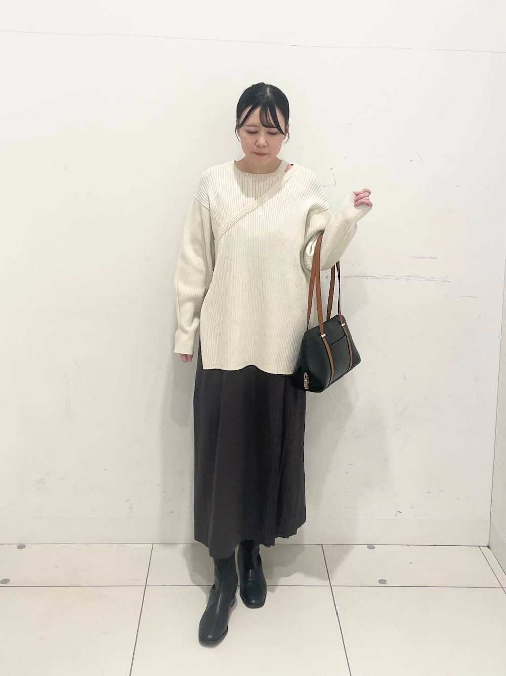 レイヤードミドルセーターの少し肩が見えるところがポイントです◎
