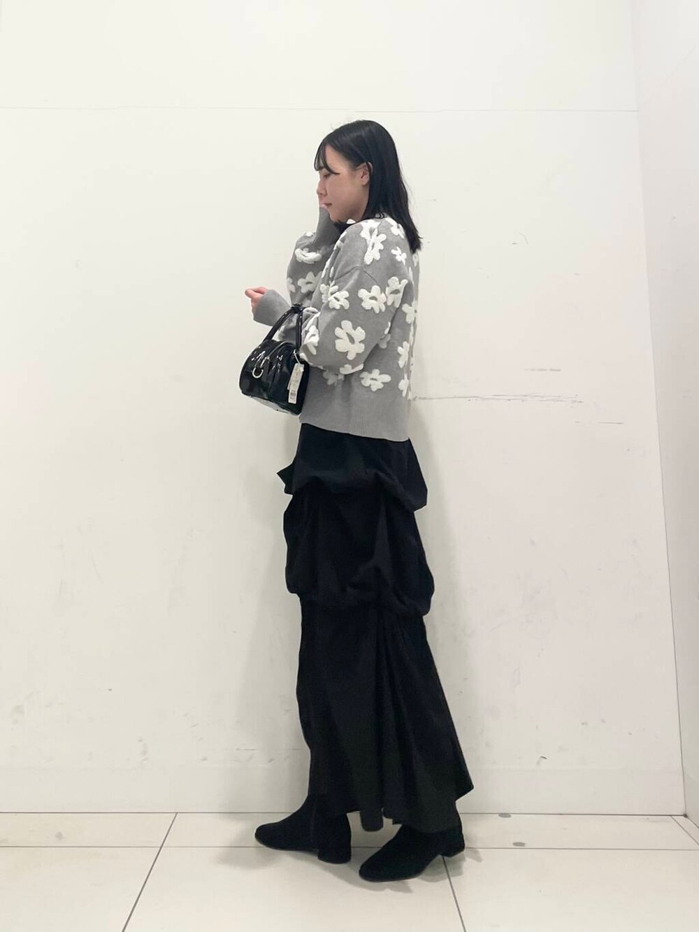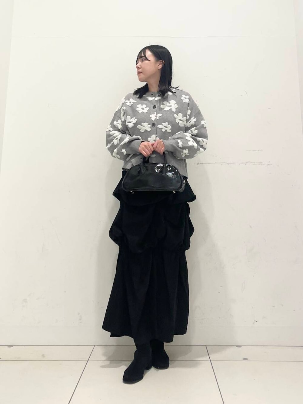 今回はフラワージャガードカーディガンのグレーを着てみました