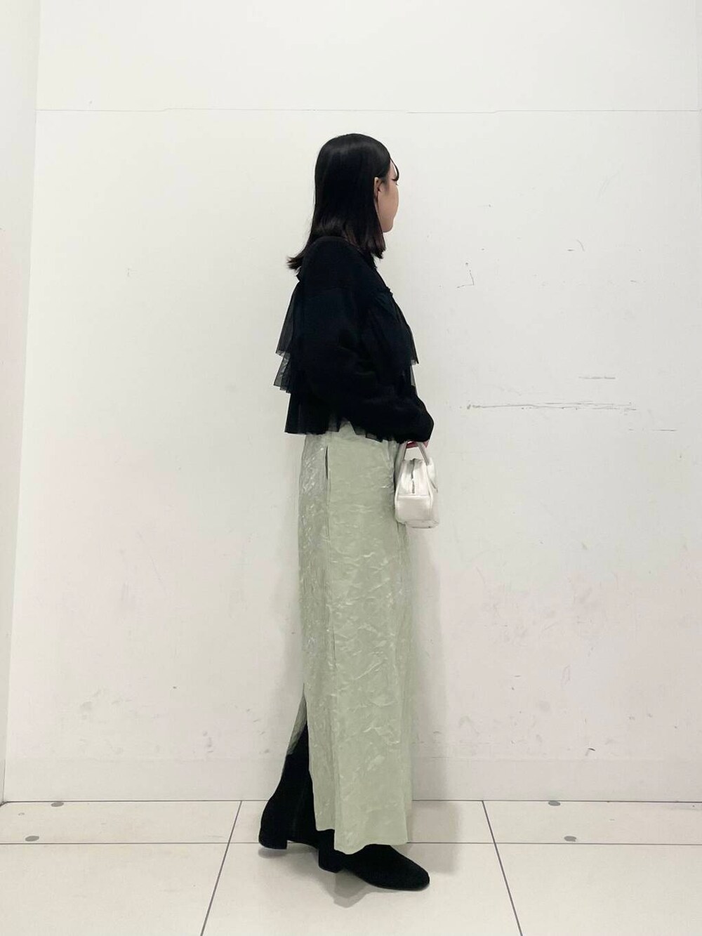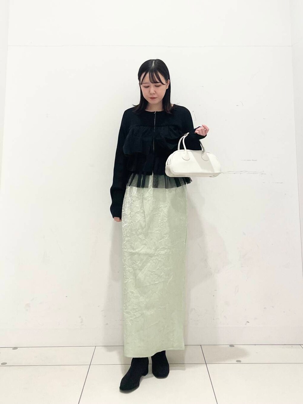 今回は春物の商品シャイニークリンクルイージースカートを履いてみました