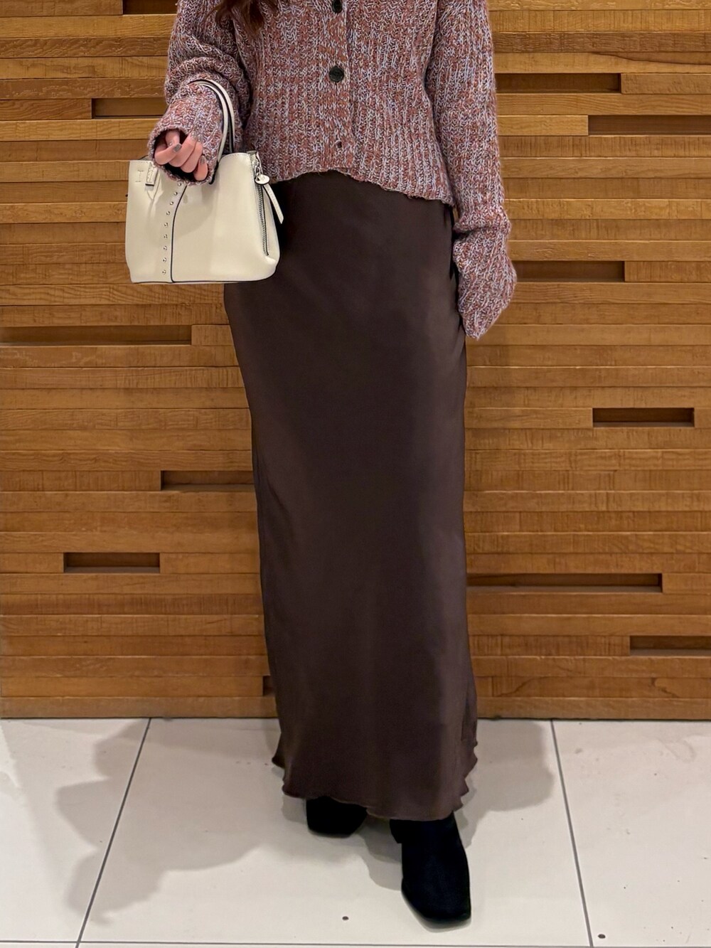 今回は綺麗めにサテンスカートで合わせてみました♪