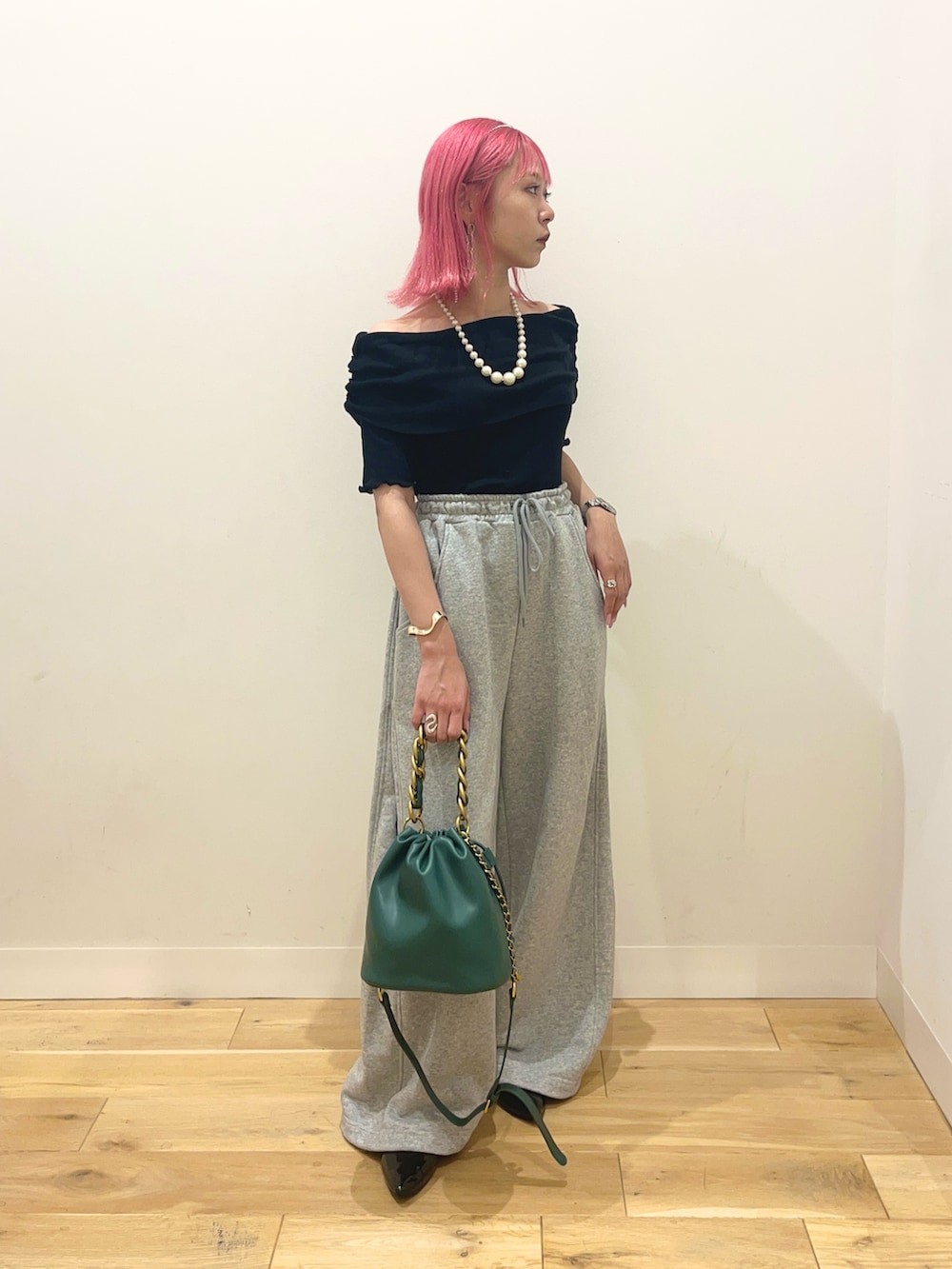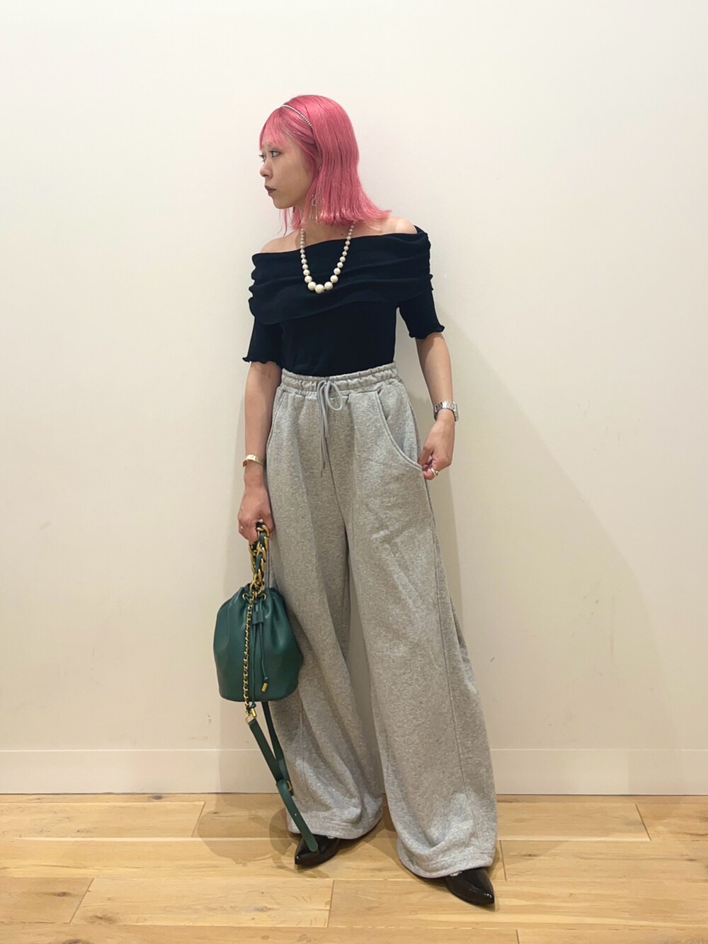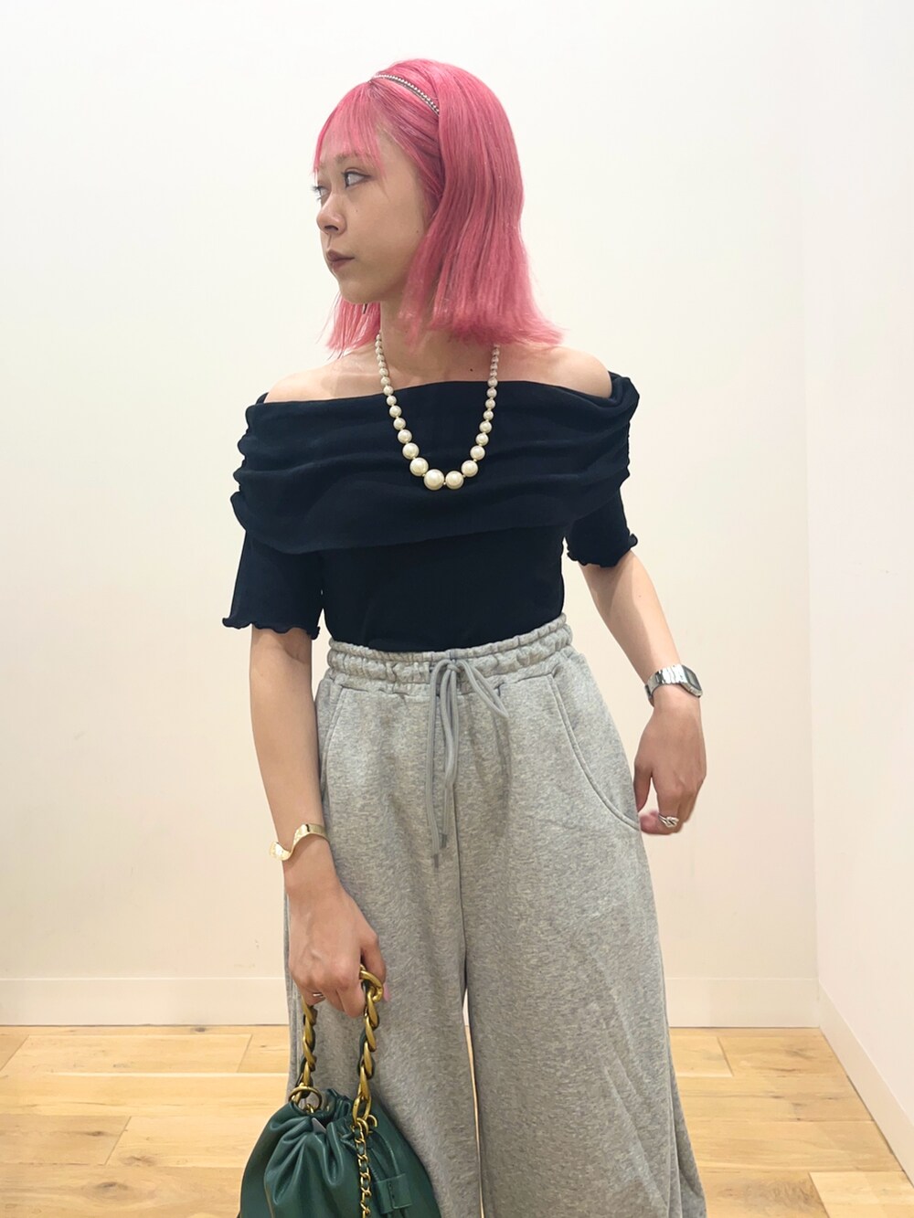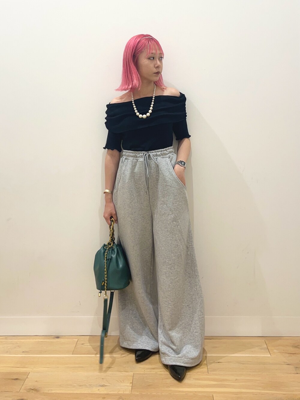 オフショルが可愛いトップスはあえてのスウェパン合わせでカジュアルに🙆🏼✨
