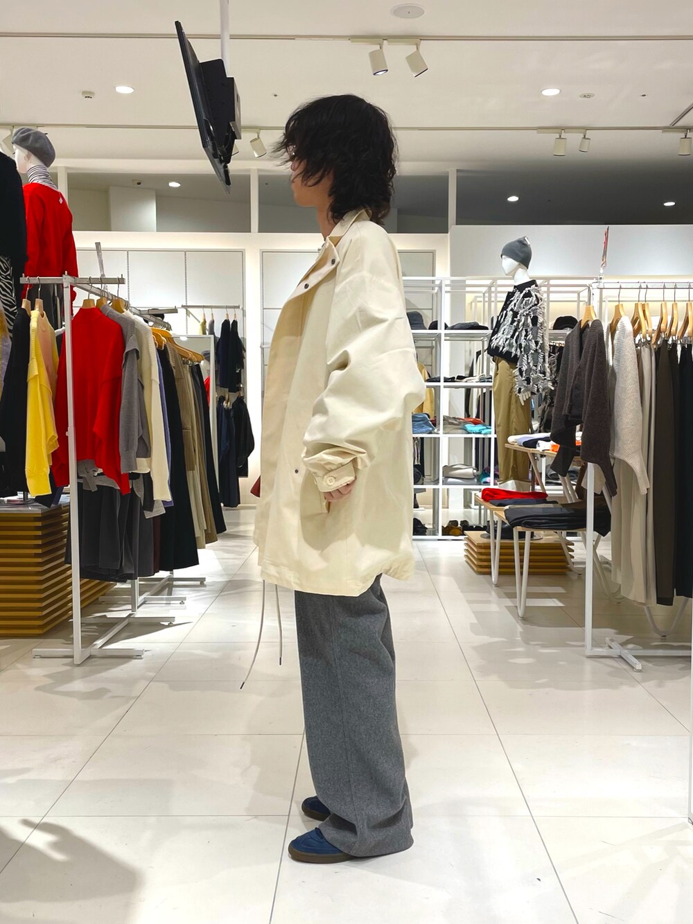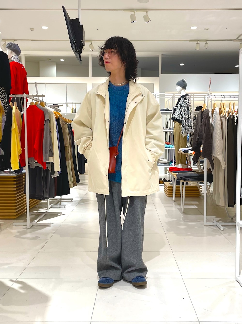 冬の装いを意識した色合わせにオレンジを差し込みアクセントに