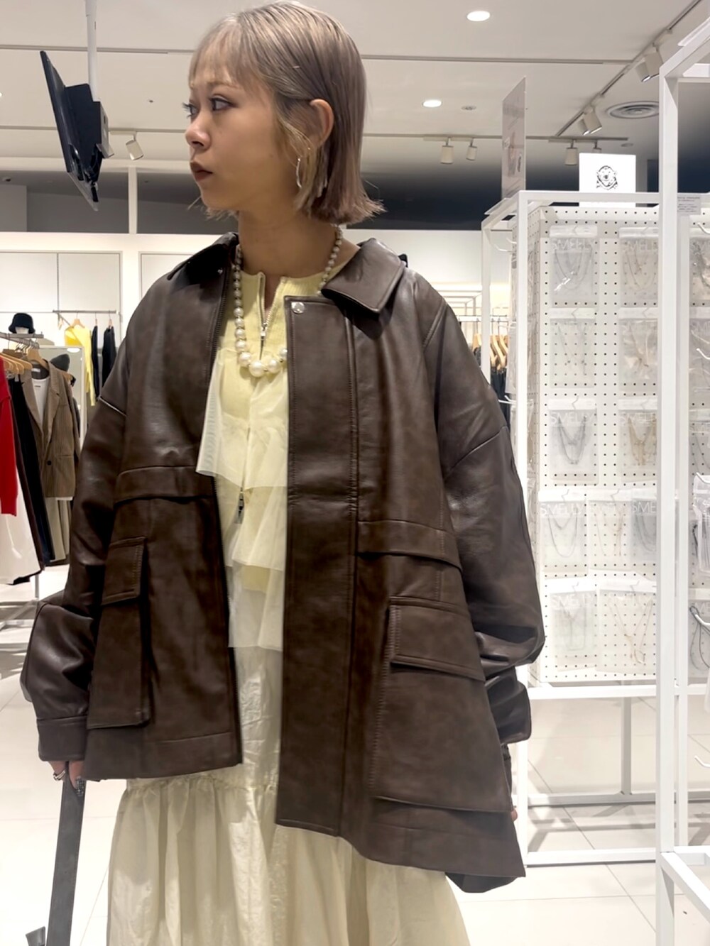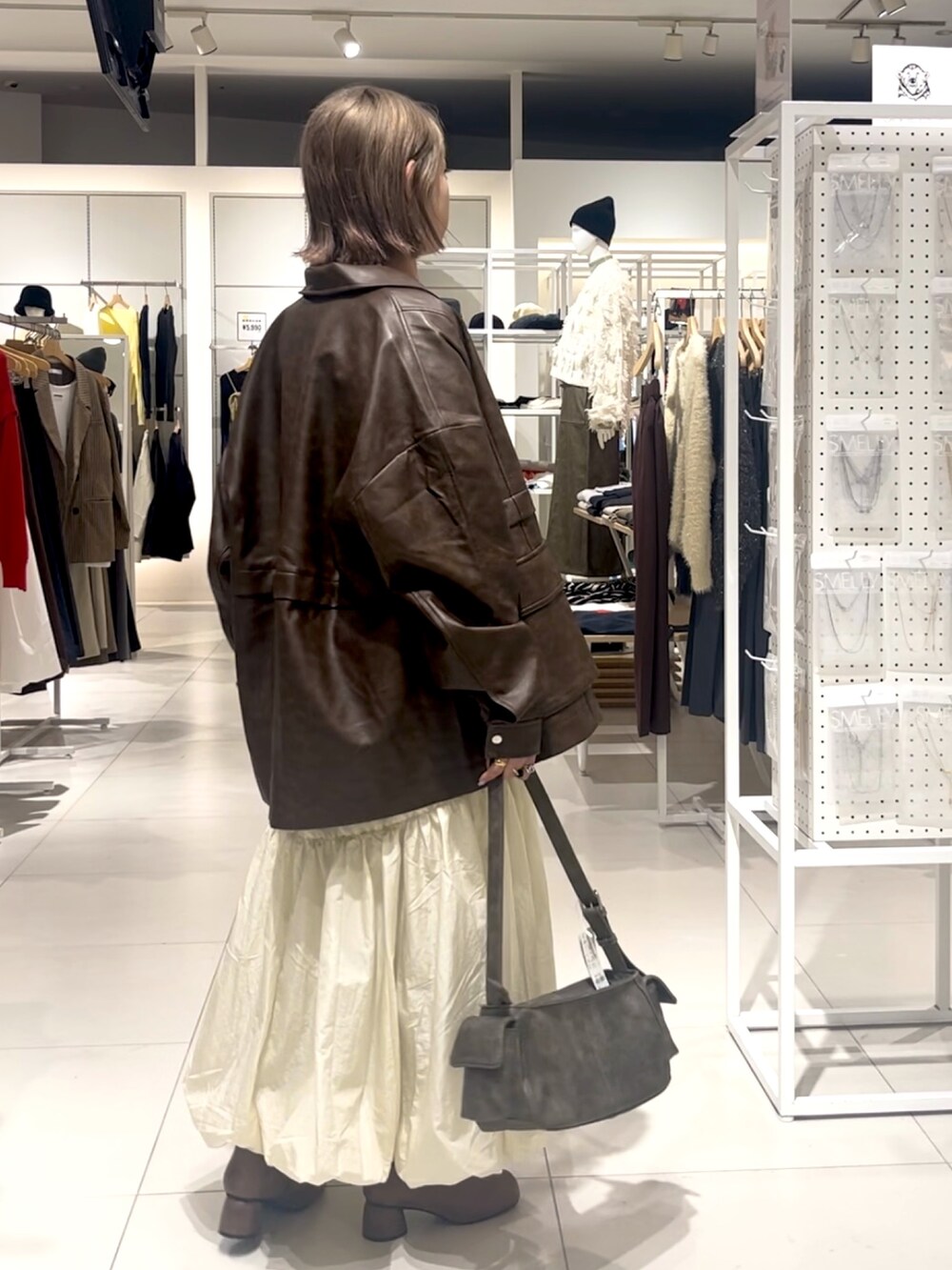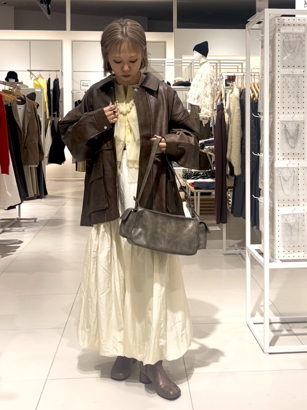 レザージャケットやヴィンテージっぽい靴やバッグには甘めのスカートとチュールニット合わせでバランス良く🫡✨💓