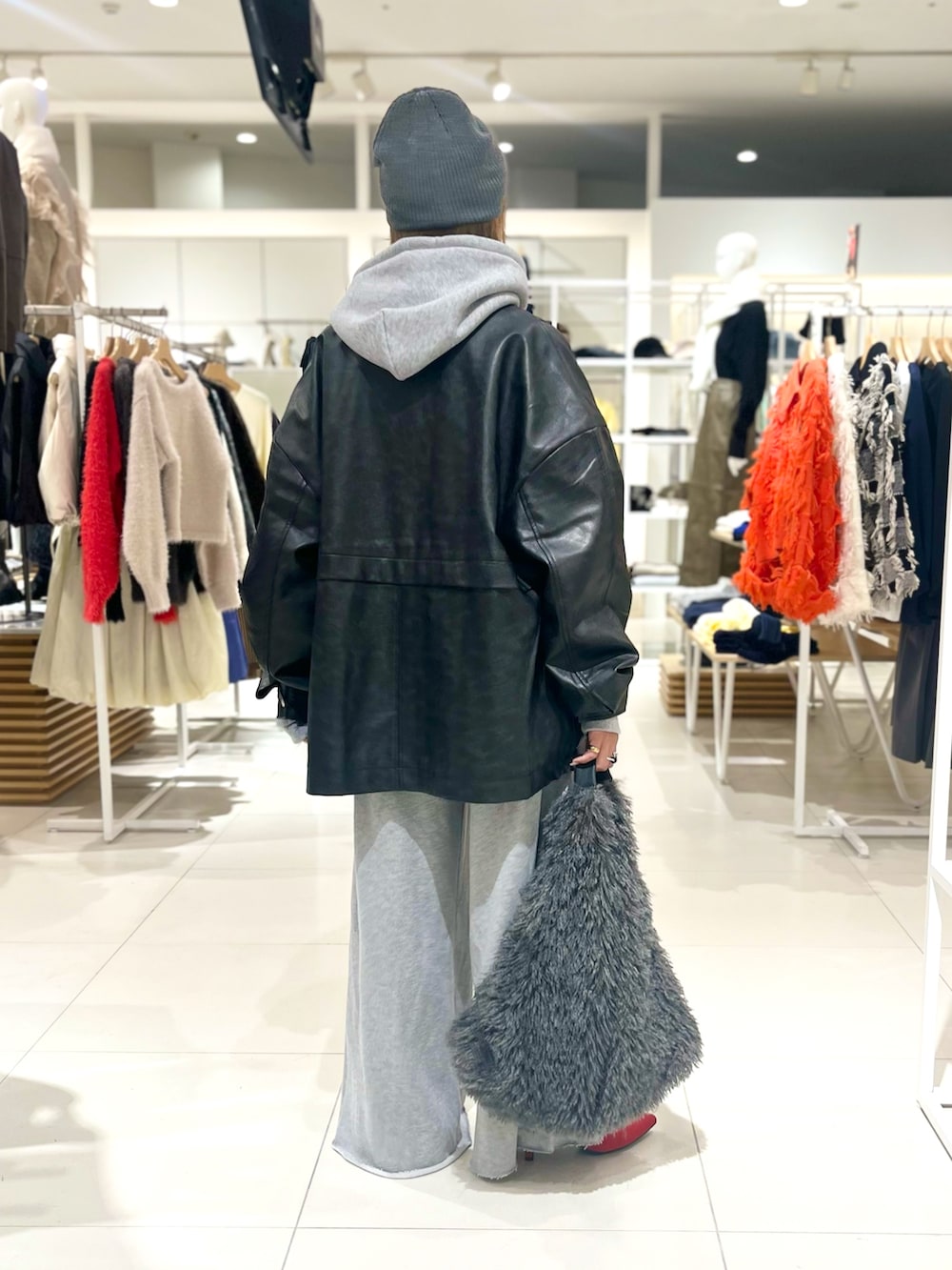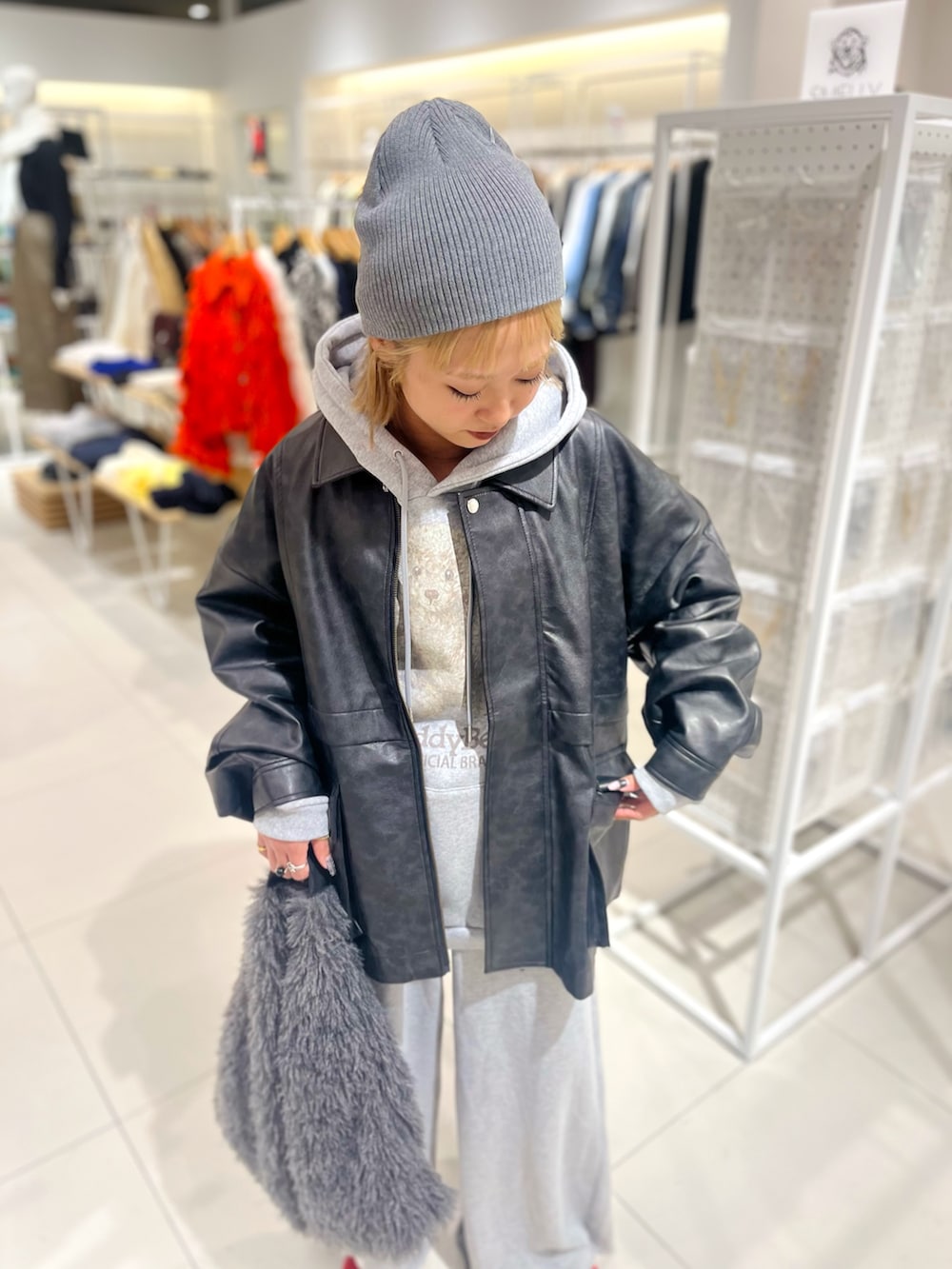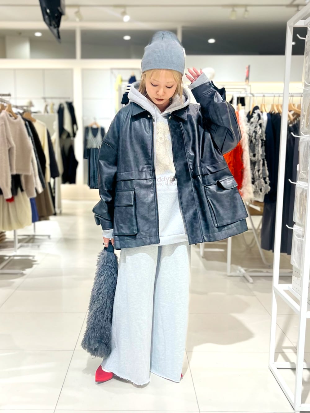 グレーパーカー×スウェパンのパジャマコーデはレザージャケットでメリハリ🐻🤍